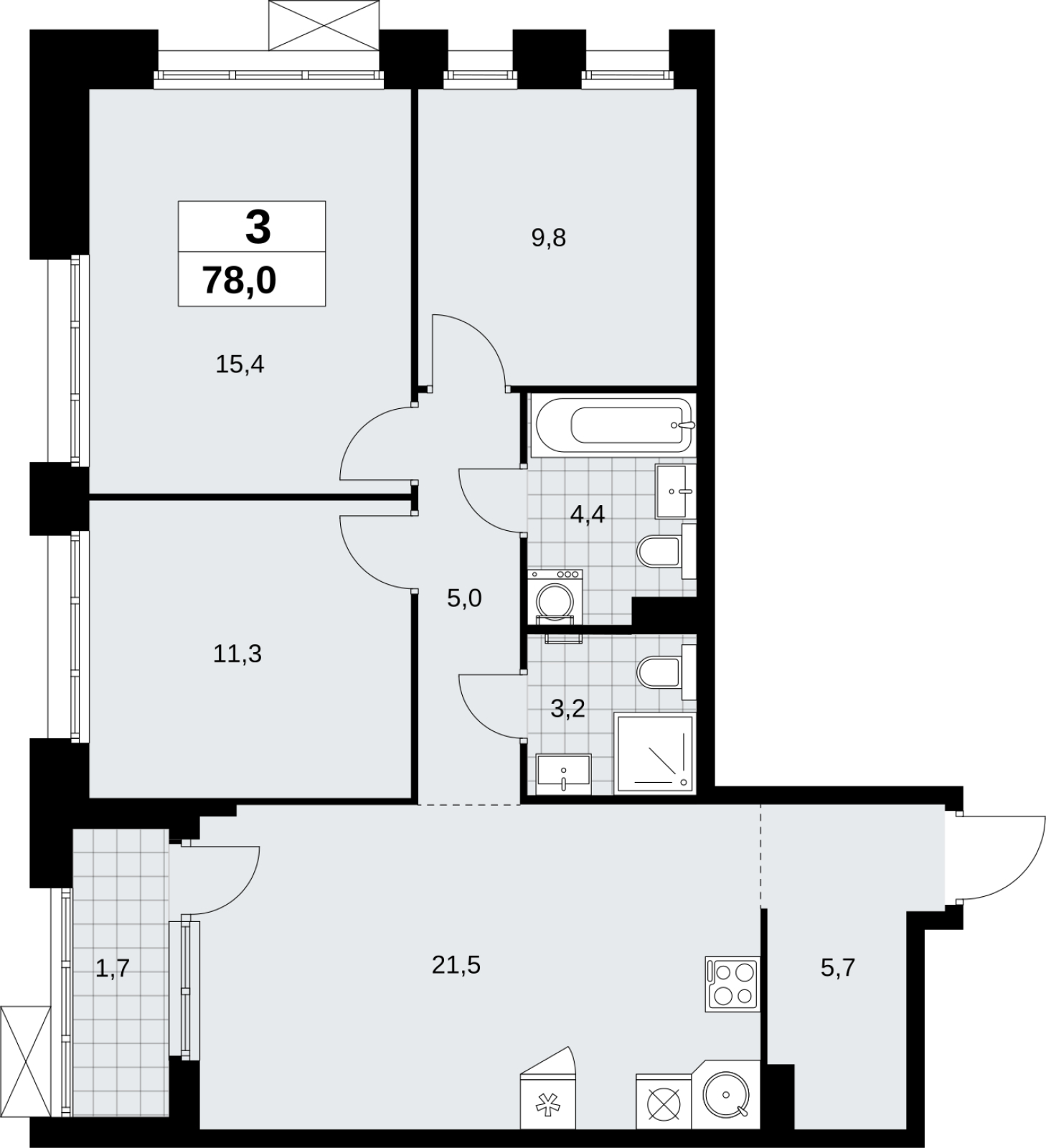 Продается 3-комн. квартира с отделкой в новом ЖК, метро рядом 3-комн. квартира с отделкой в ЖК "Прокшино" на 11 этаже. Общая площадь: 78 кв.м., жилая: 36.5 кв.м., площадь просторной кухни-столовой: 21.5 кв.м. Квартира угловая, окна oбecпeчивaют paвнoмepнoe ocвeщeниe в тeчeниe дня. В квартире одна лоджия, два совмещенных санузла. Высота потолков 2.95 м. Эта квартира будет сдана с дизайнеркой отделкой "под ключ". Специально для проекта «Прокшино» разработаны два стиля дизайнерской отделки – в тёплых и холодных тонах. В отделке используются только современный высококлассные материалы, на все работы предоставляется гарантия. Квартира находится в корпусе 9.3. Дом монолитный, одноподъездный, высотой 19 этажей. На этаже 9 квартир. В подъезде 1 пассажирский и 1 грузовой лифт. Начало строительства - 3 квартал 2025 года. Окончание строительства - 4 квартал 2027 года. Оформление сделки по договору долевого участия. Артикул квартиры по базе застройщика 58К-9.3-369. В шаговой доступности от жилого комплекса находятся станции метро (расстояние по прямой): «Прокшино» (1.4 км), «Филатов луг» (1.8 км), также недалеко от этого корпуса находятся станции метро: «Саларьево», «Румянцево», «Теплый стан». ЖК «Прокшино» расположен в 7,6 км от МКАД в Новой Москве. В 8 минутах пешком находится станция метро "Прокшино" быстрой и комфортной красной линии метро. Высокую транспортную доступность обеспечивают и два крупных шоссе, до которых легко доехать за 5 минут по новой скоростной автотрассе Солнцево – Бутово – Варшавское шоссе. Жилой комплекс "Прокшино" входит в кластер Прокшино. В районе появятся дома комфорт и бизнес-класса с подземным паркингом, закрытыми благоустроенными дворами без машин, местами для активного и созерцательного отдыха, магазинами, бытовыми сервисами и другими коммерческими объектами. Рядом пруд с собственной набережной и городской парк «Хованская дубрава». Для маленьких жителей построят детские сады, образовательный комплекс. (AQID02508685)