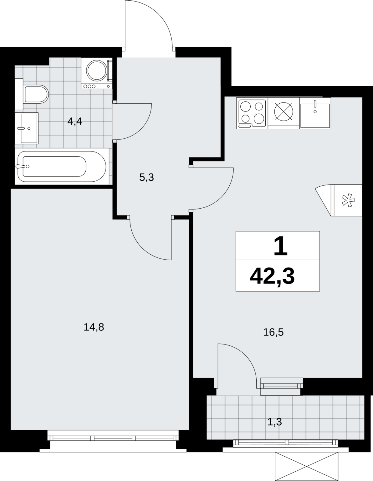 1-комнатная квартира в новом жилом комплексе, метро рядом Продается 1-комн. квартира в ЖК "Прокшино" на 8 этаже. Квартира без отделки, после получения ключей можно делать ремонт. Общая площадь: 42.3 кв.м., жилая: 14.8 кв.м., площадь просторной кухни-столовой: 16.5 кв.м. Все окна выходят на одну сторону. В квартире одна лоджия, один совмещенный санузел. Высота потолков 2.95 м. Дом монолитный, черырехподъездный, переменной этажности, от 10 до 14 этажей. Квартира находится в 4-й секции высотой 10 этажей в корпусе 9.2. На этаже 5 квартир. В подъезде 1 пассажирский и 1 грузовой лифт. Начало строительства - 3 квартал 2025 года. Окончание строительства - 4 квартал 2027 года. Оформление сделки по договору долевого участия. В шаговой доступности от жилого комплекса имеются станции метро (расстояние по прямой): «Прокшино» (1.4 км), «Филатов луг» (1.8 км), также недалеко от этого корпуса находятся станции метро: «Саларьево», «Румянцево», «Теплый стан». ЖК «Прокшино» расположен в 7,6 км от МКАД в Новой Москве. В 8 минутах пешком находится станция метро "Прокшино" быстрой и комфортной красной линии метро. Высокую транспортную доступность обеспечивают и два крупных шоссе, до которых легко доехать за 5 минут по новой скоростной автотрассе Солнцево – Бутово – Варшавское шоссе. Жилой комплекс "Прокшино" входит в кластер Прокшино. В районе появятся дома комфорт и бизнес-класса с подземным паркингом, закрытыми благоустроенными дворами без машин, местами для активного и созерцательного отдыха, магазинами, бытовыми сервисами и другими коммерческими объектами. Рядом пруд с собственной набережной и городской парк «Хованская дубрава». Для маленьких жителей построят детские сады, образовательный комплекс. (AQID02509254)