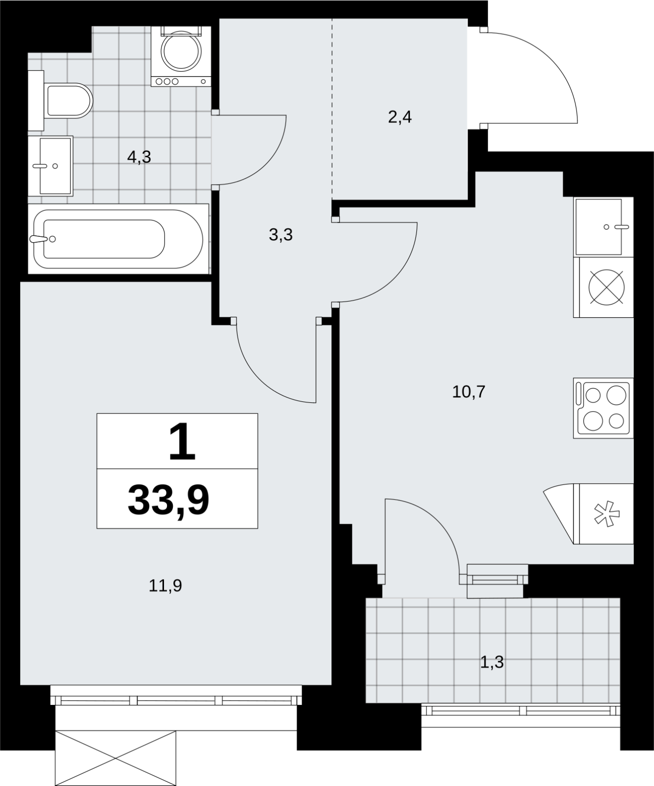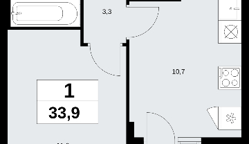 Продается однокомнатная квартира с отделкой в новом ЖК, рядом с метро Продается 1-комн. квартира от застройщика с отделкой в ЖК "Прокшино" на 5 этаже. Общая площадь: 33.9 кв.м., жилая: 11.9 кв.м., площадь просторной кухни-столовой: 10.7 кв.м. Все окна выходят на одну сторону. В квартире одна лоджия, один совмещенный санузел. Высота потолков 2.95 м. Квартира находится в корпусе 9.3. Дом монолитный, одноподъездный, высотой 19 этажей. На этаже 9 квартир. В подъезде 1 пассажирский и 1 грузовой лифт. Начало строительства - 3 квартал 2025 года. Окончание строительства - 4 квартал 2027 года. Оформление сделки по договору долевого участия. В шаговой доступности от жилого комплекса находятся станции метро (расстояние по прямой): «Прокшино» (1.4 км), «Филатов луг» (1.8 км), также недалеко от этого корпуса расположены станции метро: «Саларьево», «Румянцево», «Теплый стан». ЖК «Прокшино» расположен в 7,6 км от МКАД в Новой Москве. В 8 минутах пешком находится станция метро "Прокшино" быстрой и комфортной красной линии метро. Высокую транспортную доступность обеспечивают и два крупных шоссе, до которых легко доехать за 5 минут по новой скоростной автотрассе Солнцево – Бутово – Варшавское шоссе. Жилой комплекс "Прокшино" входит в кластер Прокшино. В районе появятся дома комфорт и бизнес-класса с подземным паркингом, закрытыми благоустроенными дворами без машин, местами для активного и созерцательного отдыха, магазинами, бытовыми сервисами и другими коммерческими объектами. Рядом пруд с собственной набережной и городской парк «Хованская дубрава». Для маленьких жителей построят детские сады, образовательный комплекс. (AQID02509296)