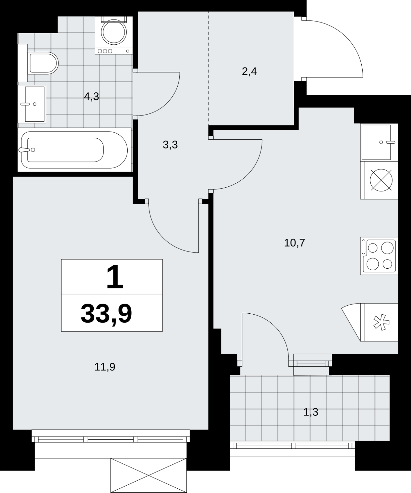 1-комн. квартира с отделкой в новом ЖК, недалеко от метро 1-комн. квартира с отделкой в ЖК "Прокшино" на 12 этаже. Общая площадь: 33.9 кв.м., жилая: 11.9 кв.м., площадь просторной кухни-столовой: 10.7 кв.м. Все окна выходят на одну сторону. В квартире одна лоджия, один совмещенный санузел. Высота потолков 2.95 м. Квартира находится в корпусе 9.3. Дом монолитный, одноподъездный, высотой 19 этажей. На этаже 9 квартир. В подъезде 1 пассажирский и 1 грузовой лифт. Начало строительства - 3 квартал 2025 года. Окончание строительства - 4 квартал 2027 года. Оформление сделки по договору долевого участия. В шаговой доступности от жилого комплекса имеются станции метро (расстояние по прямой): «Прокшино» (1.4 км), «Филатов луг» (1.8 км), также недалеко от этого корпуса расположены станции метро: «Саларьево», «Румянцево», «Теплый стан». ЖК «Прокшино» расположен в 7,6 км от МКАД в Новой Москве. В 8 минутах пешком находится станция метро "Прокшино" быстрой и комфортной красной линии метро. Высокую транспортную доступность обеспечивают и два крупных шоссе, до которых легко доехать за 5 минут по новой скоростной автотрассе Солнцево – Бутово – Варшавское шоссе. Жилой комплекс "Прокшино" входит в кластер Прокшино. В районе появятся дома комфорт и бизнес-класса с подземным паркингом, закрытыми благоустроенными дворами без машин, местами для активного и созерцательного отдыха, магазинами, бытовыми сервисами и другими коммерческими объектами. Рядом пруд с собственной набережной и городской парк «Хованская дубрава». Для маленьких жителей построят детские сады, образовательный комплекс. (AQID02509359)