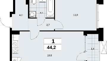 Продается однокомнатная квартира с отделкой в новом ЖК, рядом с метро Однокомнатная квартира с отделкой в ЖК "Прокшино" на 13 этаже. Общая площадь: 44.2 кв.м., жилая: 11.9 кв.м., площадь просторной кухни-столовой: 19.8 кв.м. Все окна выходят на одну сторону. В квартире одна лоджия, один совмещенный санузел. Высота потолков 2.95 м. Квартира находится в корпусе 9.3. Дом монолитный, одноподъездный, высотой 19 этажей. На этаже 9 квартир. В подъезде 1 пассажирский и 1 грузовой лифт. Начало строительства - 3 квартал 2025 года. Окончание строительства - 4 квартал 2027 года. Оформление сделки по договору долевого участия. В шаговой доступности от жилого комплекса имеются станции метро (расстояние по прямой): «Прокшино» (1.4 км), «Филатов луг» (1.8 км), также недалеко от этого корпуса расположены станции метро: «Саларьево», «Румянцево», «Теплый стан». ЖК «Прокшино» расположен в 7,6 км от МКАД в Новой Москве. В 8 минутах пешком находится станция метро "Прокшино" быстрой и комфортной красной линии метро. Высокую транспортную доступность обеспечивают и два крупных шоссе, до которых легко доехать за 5 минут по новой скоростной автотрассе Солнцево – Бутово – Варшавское шоссе. Жилой комплекс "Прокшино" входит в кластер Прокшино. В районе появятся дома комфорт и бизнес-класса с подземным паркингом, закрытыми благоустроенными дворами без машин, местами для активного и созерцательного отдыха, магазинами, бытовыми сервисами и другими коммерческими объектами. Рядом пруд с собственной набережной и городской парк «Хованская дубрава». Для маленьких жителей построят детские сады, образовательный комплекс. (AQID02509366)
