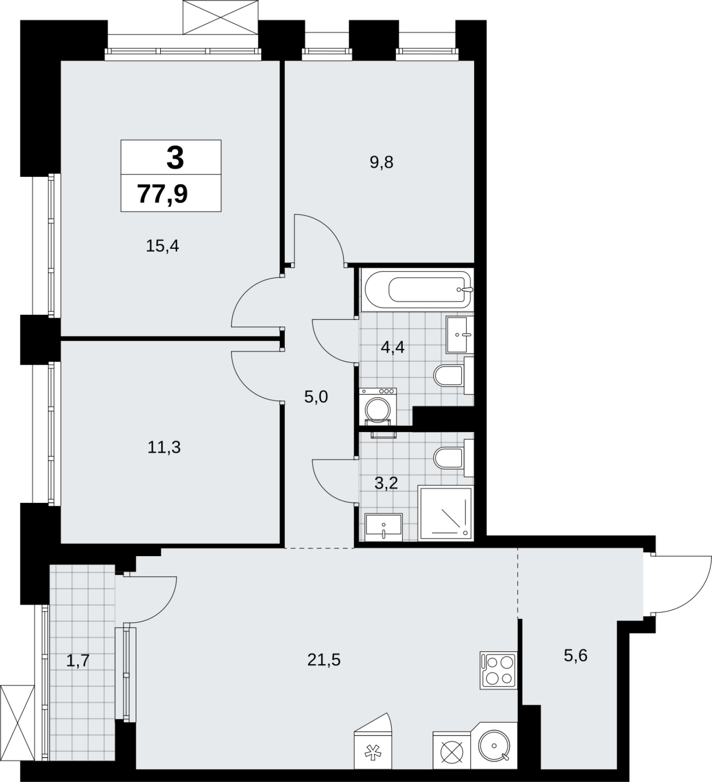 Продается просторная трехкомнатная квартира с отделкой в новом ЖК, у метро Просторная 3-комн. квартира с отделкой в ЖК "Прокшино" на 14 этаже. Общая площадь: 77.9 кв.м., жилая: 36.3 кв.м., площадь просторной кухни-столовой: 21.2 кв.м. Квартира угловая, идеально подойдет любителям тишины и панорамных видов. В квартире одна лоджия, два совмещенных санузла. Высота потолков 2.95 м. Квартира находится в корпусе 9.3. Дом монолитный, одноподъездный, высотой 19 этажей. На этаже 9 квартир. В подъезде 1 пассажирский и 1 грузовой лифт. Начало строительства - 3 квартал 2025 года. Окончание строительства - 4 квартал 2027 года. Оформление сделки по договору долевого участия. В шаговой доступности от жилого комплекса имеются станции метро (расстояние по прямой): «Прокшино» (1.4 км), «Филатов луг» (1.8 км), также недалеко от этого корпуса находятся станции метро: «Саларьево», «Румянцево», «Теплый стан». ЖК «Прокшино» расположен в 7,6 км от МКАД в Новой Москве. В 8 минутах пешком находится станция метро "Прокшино" быстрой и комфортной красной линии метро. Высокую транспортную доступность обеспечивают и два крупных шоссе, до которых легко доехать за 5 минут по новой скоростной автотрассе Солнцево – Бутово – Варшавское шоссе. Жилой комплекс "Прокшино" входит в кластер Прокшино. В районе появятся дома комфорт и бизнес-класса с подземным паркингом, закрытыми благоустроенными дворами без машин, местами для активного и созерцательного отдыха, магазинами, бытовыми сервисами и другими коммерческими объектами. Рядом пруд с собственной набережной и городской парк «Хованская дубрава». Для маленьких жителей построят детские сады, образовательный комплекс. (AQID02509371)