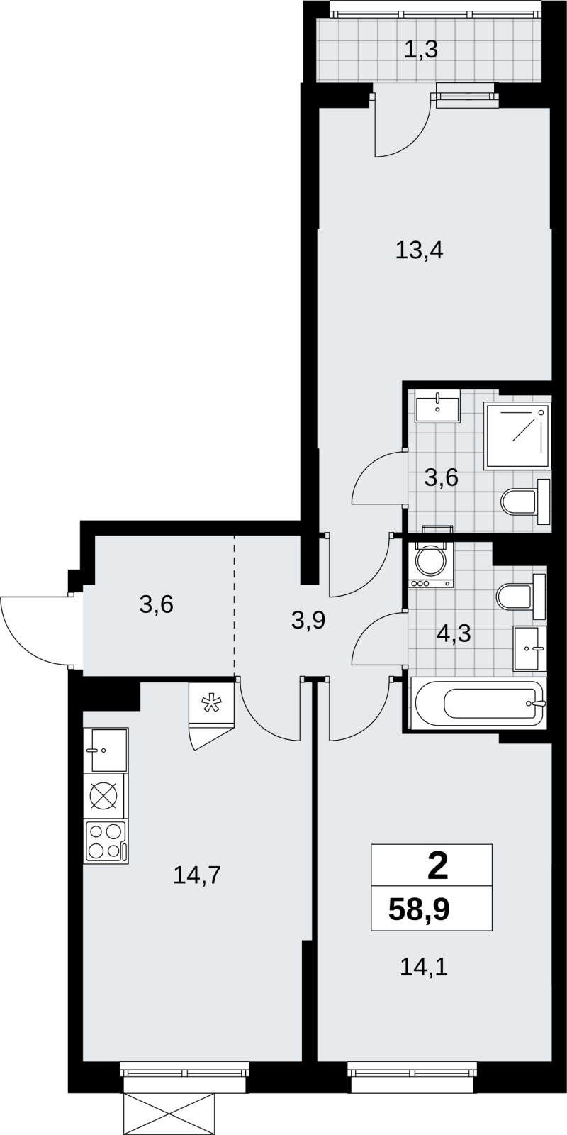 Площадь:58 м2