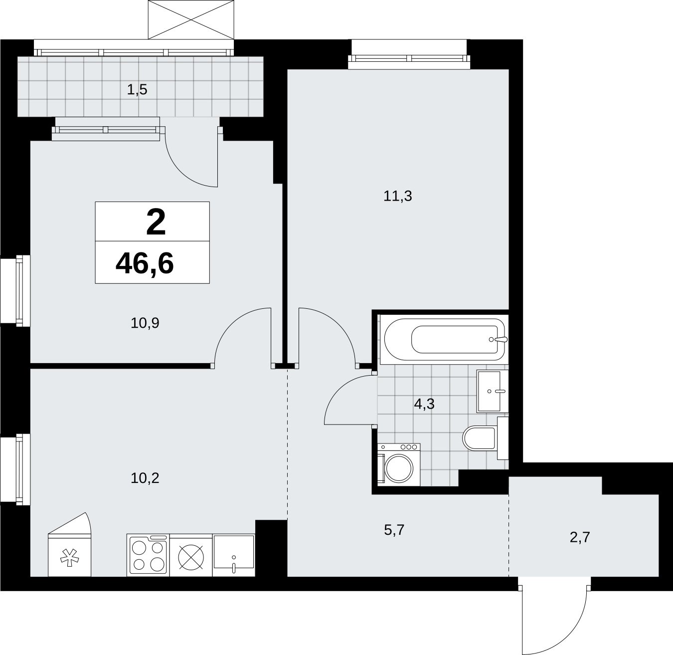 Площадь:46 м2