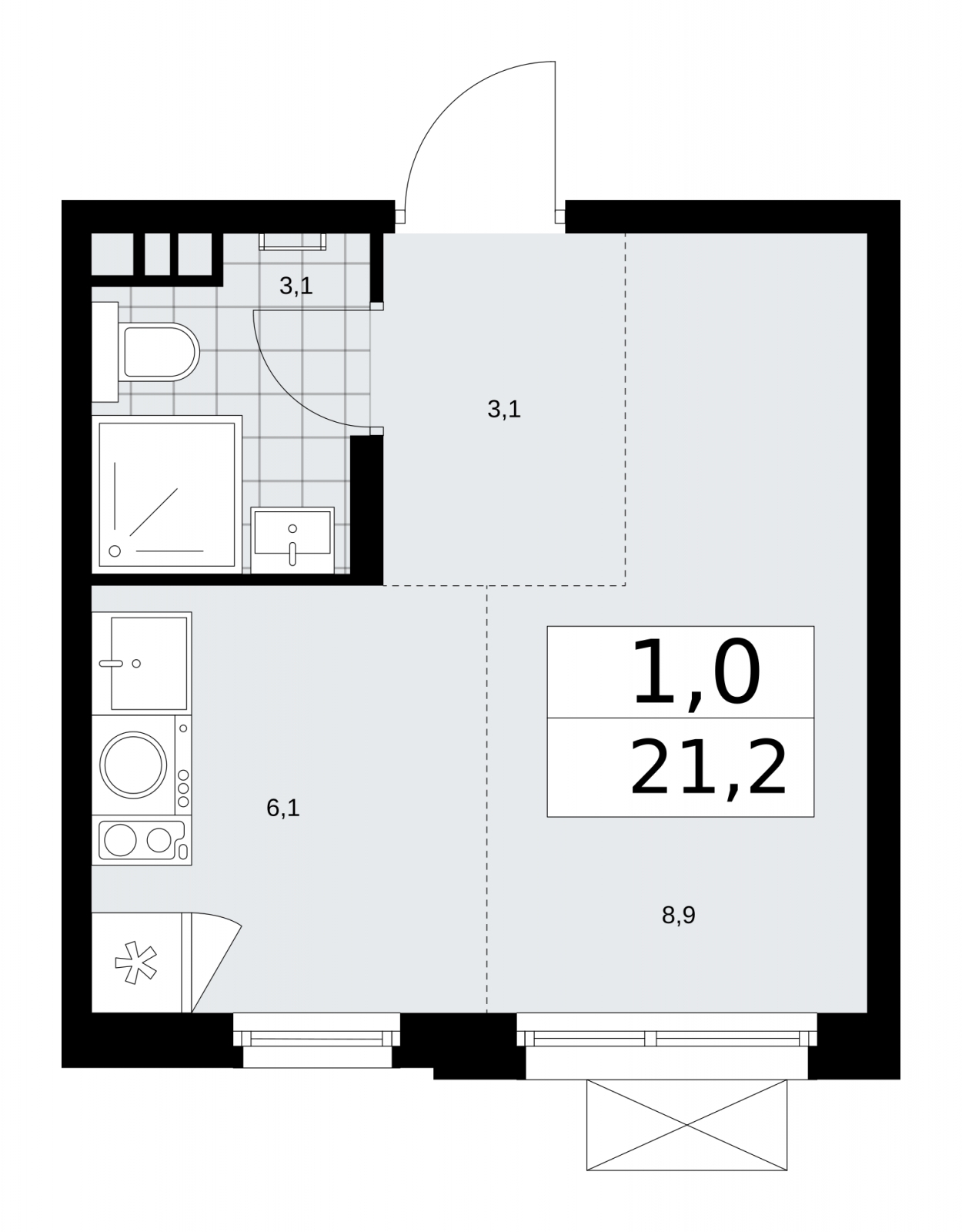 Продается 1-комн. квартира-студия с отделкой в новом ЖК, у метро Однокомнатная квартира-студия с предчистовой отделкой в ЖК "Прокшино" на 3 этаже. Общая площадь: 21.2 кв.м., площадь гостиной 15 кв.м., из которых 6.1 кв.м. выделено под кухонную зону. Все окна выходят на одну сторону. В квартире один совмещенный санузел. Высота потолков 2.99 м. Дом монолитный, трехподъездный, высотой 15 этажей. Квартира находится во 2-й секции в корпусе 10.1.4. На этаже 6 квартир. В подъезде 1 пассажирский и 1 грузовой лифт. Начало строительства - 2 квартал 2023 года. Окончание строительства - 2 квартал 2026 года. Оформление сделки по договору долевого участия. В шаговой доступности от жилого комплекса расположены станции метро (расстояние по прямой): «Прокшино» (1.4 км), «Филатов луг» (1.8 км), также недалеко от этого корпуса расположены станции метро: «Саларьево», «Румянцево», «Теплый стан». ЖК «Прокшино» расположен в 7,6 км от МКАД в Новой Москве. В 8 минутах пешком находится станция метро "Прокшино" быстрой и комфортной красной линии метро. Высокую транспортную доступность обеспечивают и два крупных шоссе, до которых легко доехать за 5 минут по новой скоростной автотрассе Солнцево – Бутово – Варшавское шоссе. Жилой комплекс "Прокшино" входит в кластер Прокшино. В районе появятся дома комфорт и бизнес-класса с подземным паркингом, закрытыми благоустроенными дворами без машин, местами для активного и созерцательного отдыха, магазинами, бытовыми сервисами и другими коммерческими объектами. Рядом пруд с собственной набережной и городской парк «Хованская дубрава». Для маленьких жителей построят детские сады, образовательный комплекс. (AQID02532380)