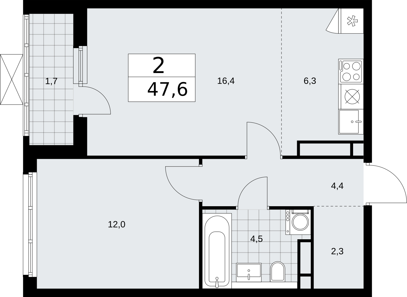 Площадь:47 м2