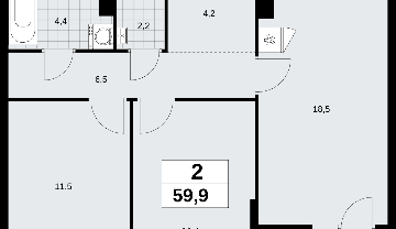 2-комн. квартира в новом ЖК, метро рядом Продается двухкомнатная квартира в ЖК "Прокшино" на 13 этаже. Квартира без отделки, после получения ключей можно делать ремонт. Общая площадь: 59.9 кв.м., жилая: 22.9 кв.м., площадь просторной кухни-столовой: 18.5 кв.м. Комнаты изолированные, все окна выходят на одну сторону. В квартире одна лоджия, один совмещенный и один раздельный санузел. Высота потолков 2.95 м. Дом монолитный, двухподъездный, высотой 13 этажей. Квартира находится в 1-й секции в корпусе 9.1. На этаже 5 квартир. В подъезде 1 пассажирский и 1 грузовой лифт. Начало строительства - 3 квартал 2025 года. Окончание строительства - 4 квартал 2027 года. Оформление сделки по договору долевого участия. В шаговой доступности от жилого комплекса находятся станции метро (расстояние по прямой): «Филатов луг» (1.4 км), «Прокшино» (1.7 км), также недалеко от этого корпуса расположены станции метро: «Саларьево», «Румянцево», «Теплый стан». ЖК «Прокшино» расположен в 7,6 км от МКАД в Новой Москве. В 8 минутах пешком находится станция метро "Прокшино" быстрой и комфортной красной линии метро. Высокую транспортную доступность обеспечивают и два крупных шоссе, до которых легко доехать за 5 минут по новой скоростной автотрассе Солнцево – Бутово – Варшавское шоссе. Жилой комплекс "Прокшино" входит в кластер Прокшино. В районе появятся дома комфорт и бизнес-класса с подземным паркингом, закрытыми благоустроенными дворами без машин, местами для активного и созерцательного отдыха, магазинами, бытовыми сервисами и другими коммерческими объектами. Рядом пруд с собственной набережной и городской парк «Хованская дубрава». Для маленьких жителей построят детские сады, образовательный комплекс. (AQID02509044)