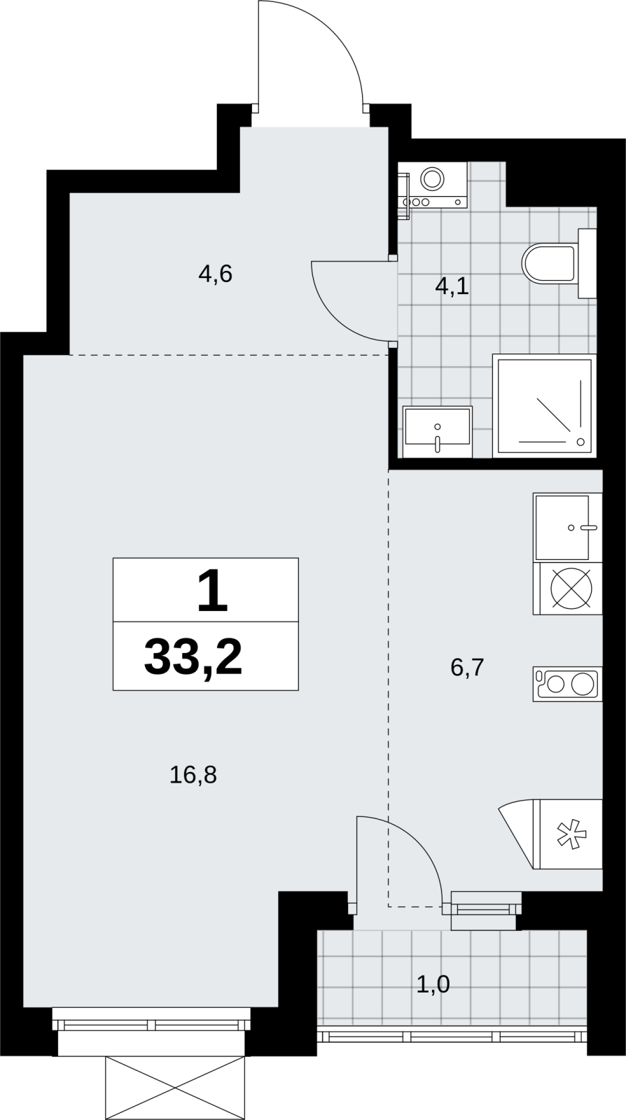 Продается просторная 1-комнатная квартира в новом жилом комплексе, рядом с метро Продается 1-комн. квартира-студия в ЖК "Прокшино" на 8 этаже. Квартира без отделки, новый собственник может сделать ремонт по своему дизайн-проекту. Общая площадь: 33.2 кв.м., площадь гостиной 23.5 кв.м., из которых 6.7 кв.м. выделено под кухонную зону. Все окна выходят на одну сторону. В квартире одна лоджия, один совмещенный санузел. Высота потолков 2.95 м. Дом монолитный, двухподъездный, высотой 13 этажей. Квартира находится во 2-й секции в корпусе 9.1. На этаже 5 квартир. В подъезде 1 пассажирский и 1 грузовой лифт. Начало строительства - 3 квартал 2025 года. Окончание строительства - 4 квартал 2027 года. Оформление сделки по договору долевого участия. В шаговой доступности от жилого комплекса имеются станции метро (расстояние по прямой): «Филатов луг» (1.4 км), «Прокшино» (1.7 км), также недалеко от этого корпуса находятся станции метро: «Саларьево», «Румянцево», «Теплый стан». ЖК «Прокшино» расположен в 7,6 км от МКАД в Новой Москве. В 8 минутах пешком находится станция метро "Прокшино" быстрой и комфортной красной линии метро. Высокую транспортную доступность обеспечивают и два крупных шоссе, до которых легко доехать за 5 минут по новой скоростной автотрассе Солнцево – Бутово – Варшавское шоссе. Жилой комплекс "Прокшино" входит в кластер Прокшино. В районе появятся дома комфорт и бизнес-класса с подземным паркингом, закрытыми благоустроенными дворами без машин, местами для активного и созерцательного отдыха, магазинами, бытовыми сервисами и другими коммерческими объектами. Рядом пруд с собственной набережной и городской парк «Хованская дубрава». Для маленьких жителей построят детские сады, образовательный комплекс. (AQID02509072)