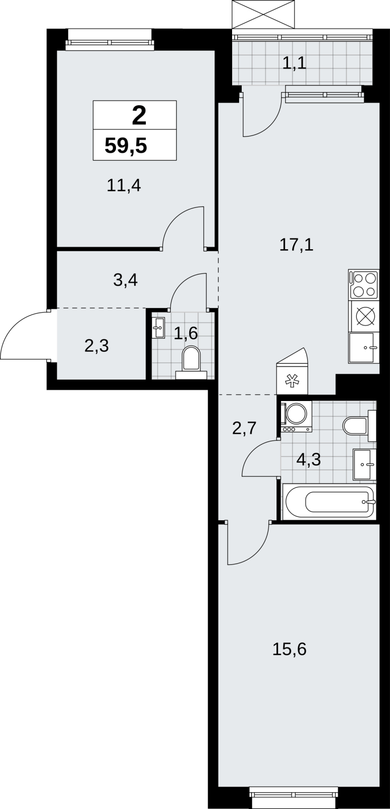 Площадь:59 м2