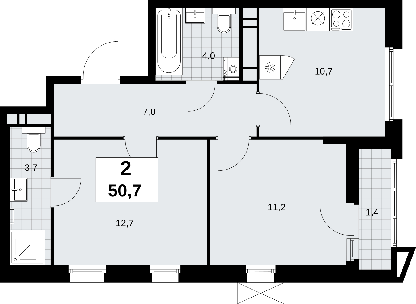 Продается 2-комнатная квартира в новостройке, метро рядом Продается 2-комн. квартира в ЖК "Прокшино" на 16 этаже. Квартира без отделки, новый собственник может сделать ремонт по индивидуальному дизайн-проекту. Общая площадь: 50.7 кв.м., жилая: 23.9 кв.м., площадь просторной кухни-столовой: 10.7 кв.м. Квартира угловая, окна oбecпeчивaют paвнoмepнoe ocвeщeниe в тeчeниe дня. В квартире одна лоджия, два совмещенных санузла. Высота потолков 2.95 м. Эта квартира предлагается без отделки. Будут установлены стеклопакеты с повышенной тепло- и шумоизоляцией, в квартиру заведены все коммуникации. Вы сможете в полном объеме реализовать ваши идеи обустройства вашего комфортного дома. Дом монолитный, трехподъездный, переменной этажности, от 12 до 16 этажей. Квартира находится в 3-й секции высотой 16 этажей в корпусе 7.1.1. На этаже 5 квартир. В подъезде 1 пассажирский и 1 грузовой лифт. Начало строительства - 4 квартал 2024 года. Окончание строительства - 1 квартал 2027 года. Оформление сделки по договору долевого участия. Артикул квартиры по базе застройщика 58К-7.1.1-196. В шаговой доступности от жилого комплекса находятся станции метро (расстояние по прямой): «Филатов луг» (1.4 км), «Прокшино» (1.7 км), также недалеко от этого корпуса находятся станции метро: «Саларьево», «Румянцево», «Теплый стан». ЖК «Прокшино» расположен в 7,6 км от МКАД в Новой Москве. В 8 минутах пешком находится станция метро "Прокшино" быстрой и комфортной красной линии метро. Высокую транспортную доступность обеспечивают и два крупных шоссе, до которых легко доехать за 5 минут по новой скоростной автотрассе Солнцево – Бутово – Варшавское шоссе. Жилой комплекс "Прокшино" входит в кластер Прокшино. В районе появятся дома комфорт и бизнес-класса с подземным паркингом, закрытыми благоустроенными дворами без машин, местами для активного и созерцательного отдыха, магазинами, бытовыми сервисами и другими коммерческими объектами. Рядом пруд с собственной набережной и городской парк «Хованская дубрава». Для маленьких жителей построят детские сады, образовательный комплекс. (AQID02421884)