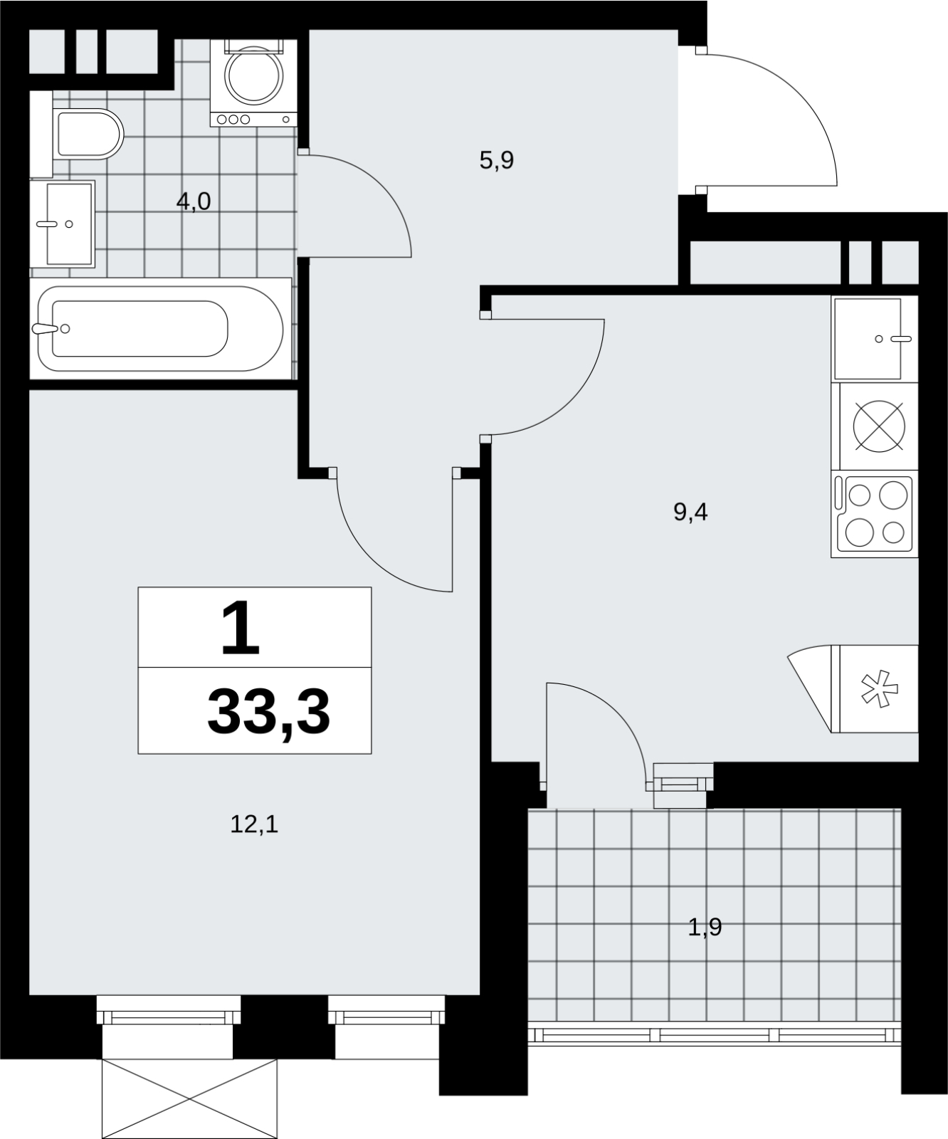 Площадь:33 м2