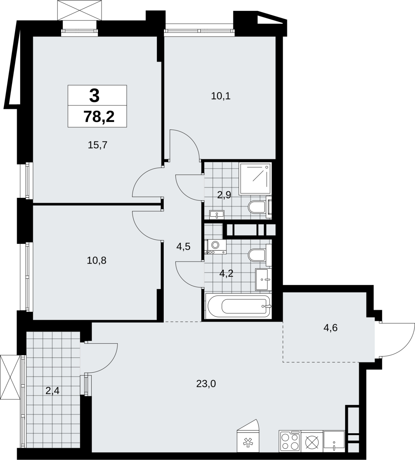 Продается 3-комн. квартира с отделкой в новом жилом комплексе, рядом с метро Продается трехкомнатная квартира с отделкой в ЖК "Прокшино" на 13 этаже. Общая площадь: 78.2 кв.м., жилая: 36.6 кв.м., площадь просторной кухни-столовой: 23 кв.м. Угловая квартира, очень светлая, естественная вентиляция при открытии окон. В квартире одна лоджия, два совмещенных санузла. Высота потолков 2.95 м. Эта квартира будет сдана с дизайнеркой отделкой "под ключ". Специально для проекта «Прокшино» разработаны два стиля дизайнерской отделки – в тёплых и холодных тонах. В отделке используются только современный высококлассные материалы, на все работы предоставляется гарантия. Квартира находится в корпусе 7.1.3. Дом монолитный, одноподъездный, высотой 17 этажей. На этаже 9 квартир. В подъезде 1 пассажирский и 1 грузовой лифт. Начало строительства - 4 квартал 2024 года. Окончание строительства - 2 квартал 2027 года. Оформление сделки по договору долевого участия. Артикул квартиры по базе застройщика 58К-7.1.3-509. В шаговой доступности от жилого комплекса имеются станции метро (расстояние по прямой): «Филатов луг» (1.4 км), «Прокшино» (1.7 км), также недалеко от этого корпуса расположены станции метро: «Саларьево», «Румянцево», «Теплый стан». ЖК «Прокшино» расположен в 7,6 км от МКАД в Новой Москве. В 8 минутах пешком находится станция метро "Прокшино" быстрой и комфортной красной линии метро. Высокую транспортную доступность обеспечивают и два крупных шоссе, до которых легко доехать за 5 минут по новой скоростной автотрассе Солнцево – Бутово – Варшавское шоссе. Жилой комплекс "Прокшино" входит в кластер Прокшино. В районе появятся дома комфорт и бизнес-класса с подземным паркингом, закрытыми благоустроенными дворами без машин, местами для активного и созерцательного отдыха, магазинами, бытовыми сервисами и другими коммерческими объектами. Рядом пруд с собственной набережной и городской парк «Хованская дубрава». Для маленьких жителей построят детские сады, образовательный комплекс. (AQID02422197)