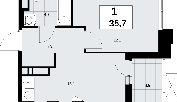Продается 1-комнатная квартира в новостройке, недалеко от метро Продается 1-комн. квартира в ЖК "Прокшино" на 14 этаже. Квартира без отделки, после выдачи ключей можно делать ремонт. Общая площадь: 35.7 кв.м., жилая: 12.1 кв.м., площадь просторной кухни-столовой: 13.1 кв.м. Все окна выходят на одну сторону. В квартире одна лоджия, один совмещенный санузел. Высота потолков 2.95 м. Квартира находится в корпусе 7.1.4. Дом монолитный, одноподъездный, высотой 17 этажей. На этаже 9 квартир. В подъезде 1 пассажирский и 1 грузовой лифт. Начало строительства - 4 квартал 2024 года. Окончание строительства - 1 квартал 2027 года. Оформление сделки по договору долевого участия. В шаговой доступности от жилого комплекса расположены станции метро (расстояние по прямой): «Филатов луг» (1.4 км), «Прокшино» (1.7 км), также недалеко от этого корпуса расположены станции метро: «Саларьево», «Румянцево», «Теплый стан». ЖК «Прокшино» расположен в 7,6 км от МКАД в Новой Москве. В 8 минутах пешком находится станция метро "Прокшино" быстрой и комфортной красной линии метро. Высокую транспортную доступность обеспечивают и два крупных шоссе, до которых легко доехать за 5 минут по новой скоростной автотрассе Солнцево – Бутово – Варшавское шоссе. Жилой комплекс "Прокшино" входит в кластер Прокшино. В районе появятся дома комфорт и бизнес-класса с подземным паркингом, закрытыми благоустроенными дворами без машин, местами для активного и созерцательного отдыха, магазинами, бытовыми сервисами и другими коммерческими объектами. Рядом пруд с собственной набережной и городской парк «Хованская дубрава». Для маленьких жителей построят детские сады, образовательный комплекс. (AQID02423309)