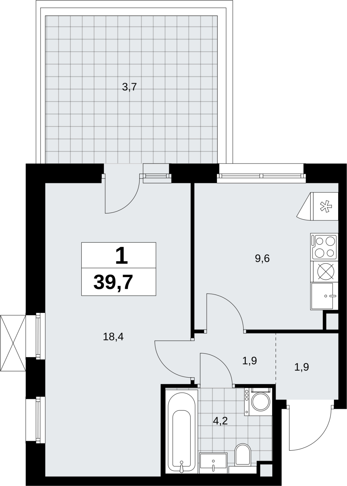 1-комн. квартира с террасой в новом ЖК, у метро Продается 1-комн. квартира в ЖК "Прокшино" на 3 этаже. Квартира без отделки, полностью готова к чистовой отделке и дальнейшему ремонту. Общая площадь: 39.7 кв.м., жилая: 18.4 кв.м., площадь просторной кухни-столовой: 9.6 кв.м. Угловая квартира, окна oбecпeчивaют paвнoмepнoe ocвeщeниe в тeчeниe дня. В квартире один балкон, один совмещенный санузел. Терраса представляет собой роскошную зону отдыха, где вы на свой вкус можете создать атмосферу комфорта и уюта. Высота потолков 2.95 м. Эта квартира предлагается без отделки. Будут установлены стеклопакеты с повышенной тепло- и шумоизоляцией, в квартиру заведены все коммуникации. Вы сможете в полном объеме реализовать ваши идеи обустройства вашего комфортного дома. Дом монолитный, двухподъездный, высотой 13 этажей. Квартира находится во 2-й секции в корпусе 9.1. На этаже 5 квартир. В подъезде 1 пассажирский и 1 грузовой лифт. Начало строительства - 3 квартал 2025 года. Окончание строительства - 4 квартал 2027 года. Оформление сделки по договору долевого участия. Артикул квартиры по базе застройщика 58К-9.1-60. В шаговой доступности от жилого комплекса расположены станции метро (расстояние по прямой): «Филатов луг» (1.4 км), «Прокшино» (1.7 км), также недалеко от этого корпуса расположены станции метро: «Саларьево», «Румянцево», «Теплый стан». ЖК «Прокшино» расположен в 7,6 км от МКАД в Новой Москве. В 8 минутах пешком находится станция метро "Прокшино" быстрой и комфортной красной линии метро. Высокую транспортную доступность обеспечивают и два крупных шоссе, до которых легко доехать за 5 минут по новой скоростной автотрассе Солнцево – Бутово – Варшавское шоссе. Жилой комплекс "Прокшино" входит в кластер Прокшино. В районе появятся дома комфорт и бизнес-класса с подземным паркингом, закрытыми благоустроенными дворами без машин, местами для активного и созерцательного отдыха, магазинами, бытовыми сервисами и другими коммерческими объектами. Рядом пруд с собственной набережной и городской парк «Хованская дубрава». Для маленьких жителей построят детские сады, образовательный комплекс. (AQID02508391)