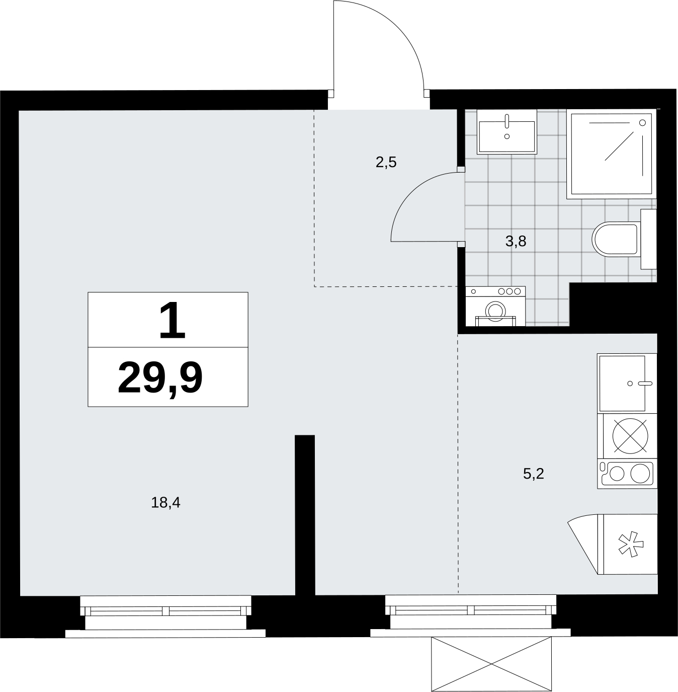 Площадь:29 м2