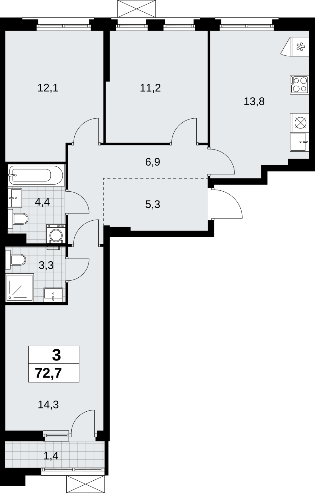 Площадь:72 м2