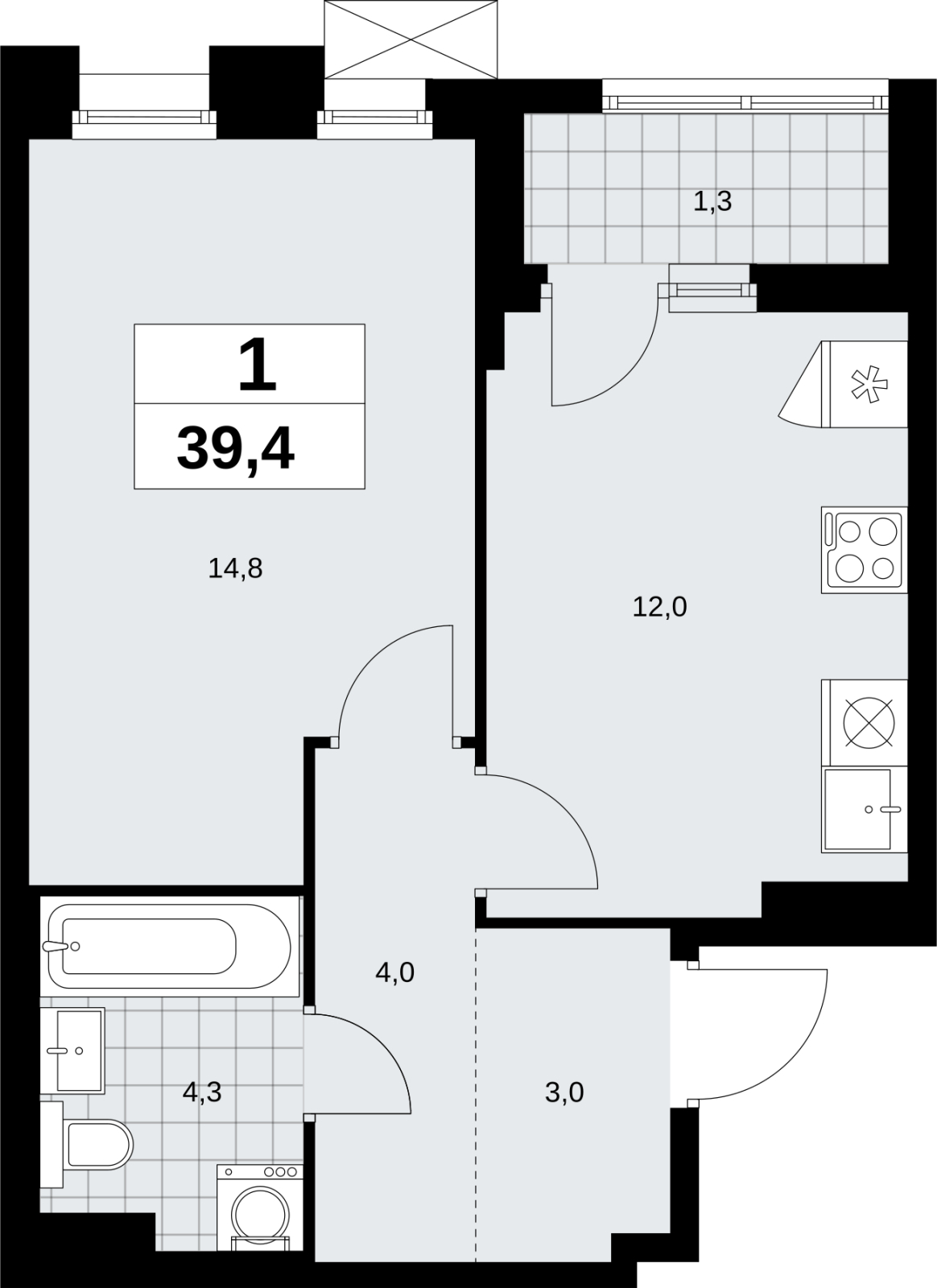 1-комнатная квартира с отделкой в новом ЖК, метро рядом Просторная 1-комн. квартира с отделкой в ЖК "Прокшино" на 17 этаже. Общая площадь: 39.4 кв.м., жилая: 14.8 кв.м., площадь просторной кухни-столовой: 12 кв.м. Все окна выходят на одну сторону. В квартире одна лоджия, один совмещенный санузел. Высота потолков 2.95 м. Эта квартира будет сдана с дизайнеркой отделкой "под ключ". Специально для проекта «Прокшино» разработаны два стиля дизайнерской отделки – в тёплых и холодных тонах. В отделке используются только современный высококлассные материалы, на все работы предоставляется гарантия. Квартира находится в корпусе 9.3. Дом монолитный, одноподъездный, высотой 19 этажей. На этаже 9 квартир. В подъезде 1 пассажирский и 1 грузовой лифт. Начало строительства - 3 квартал 2025 года. Окончание строительства - 4 квартал 2027 года. Оформление сделки по договору долевого участия. Артикул квартиры по базе застройщика 58К-9.3-425. В шаговой доступности от жилого комплекса находятся станции метро (расстояние по прямой): «Филатов луг» (1.4 км), «Прокшино» (1.7 км), также недалеко от этого корпуса находятся станции метро: «Саларьево», «Румянцево», «Теплый стан». ЖК «Прокшино» расположен в 7,6 км от МКАД в Новой Москве. В 8 минутах пешком находится станция метро "Прокшино" быстрой и комфортной красной линии метро. Высокую транспортную доступность обеспечивают и два крупных шоссе, до которых легко доехать за 5 минут по новой скоростной автотрассе Солнцево – Бутово – Варшавское шоссе. Жилой комплекс "Прокшино" входит в кластер Прокшино. В районе появятся дома комфорт и бизнес-класса с подземным паркингом, закрытыми благоустроенными дворами без машин, местами для активного и созерцательного отдыха, магазинами, бытовыми сервисами и другими коммерческими объектами. Рядом пруд с собственной набережной и городской парк «Хованская дубрава». Для маленьких жителей построят детские сады, образовательный комплекс. (AQID02508741)
