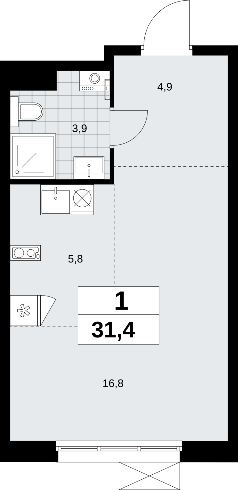 Продается 1-комн. квартира в новом жилом комплексе, метро рядом Просторная 1-комн. квартира-студия в ЖК "Прокшино" на 9 этаже. Квартира без отделки, новый собственник может сделать ремонт по своему дизайн-проекту. Общая площадь: 31.4 кв.м., площадь гостиной 22.6 кв.м., из которых 5.8 кв.м. выделено под кухонную зону. Все окна выходят на одну сторону. В квартире один совмещенный санузел. Высота потолков 2.95 м. Дом монолитный, двухподъездный, высотой 13 этажей. Квартира находится в 1-й секции в корпусе 9.1. На этаже 5 квартир. В подъезде 1 пассажирский и 1 грузовой лифт. Начало строительства - 3 квартал 2025 года. Окончание строительства - 4 квартал 2027 года. Оформление сделки по договору долевого участия. В шаговой доступности от жилого комплекса расположены станции метро (расстояние по прямой): «Филатов луг» (1.4 км), «Прокшино» (1.7 км), также недалеко от этого корпуса находятся станции метро: «Саларьево», «Румянцево», «Теплый стан». ЖК «Прокшино» расположен в 7,6 км от МКАД в Новой Москве. В 8 минутах пешком находится станция метро "Прокшино" быстрой и комфортной красной линии метро. Высокую транспортную доступность обеспечивают и два крупных шоссе, до которых легко доехать за 5 минут по новой скоростной автотрассе Солнцево – Бутово – Варшавское шоссе. Жилой комплекс "Прокшино" входит в кластер Прокшино. В районе появятся дома комфорт и бизнес-класса с подземным паркингом, закрытыми благоустроенными дворами без машин, местами для активного и созерцательного отдыха, магазинами, бытовыми сервисами и другими коммерческими объектами. Рядом пруд с собственной набережной и городской парк «Хованская дубрава». Для маленьких жителей построят детские сады, образовательный комплекс. (AQID02509024)
