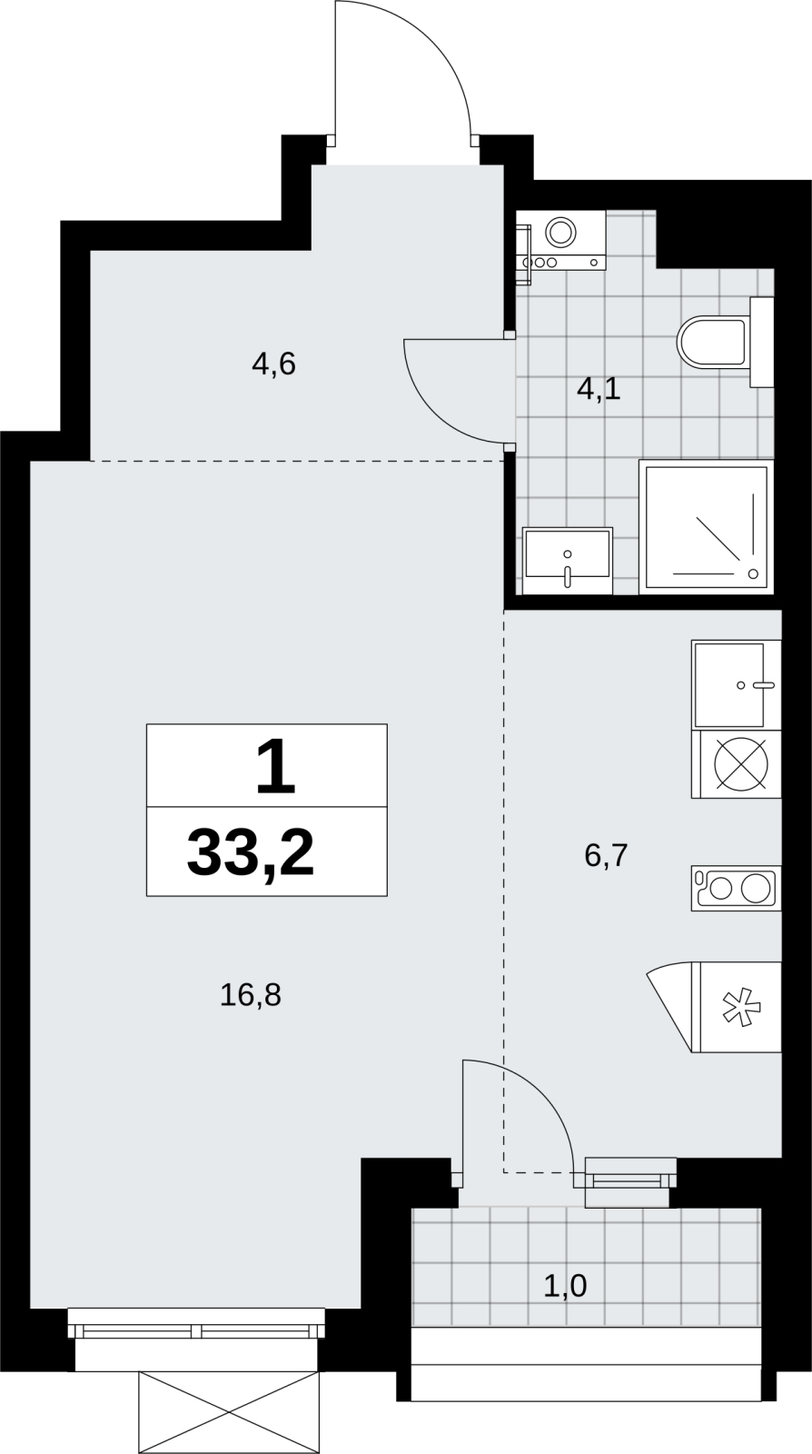 Однокомнатная квартира в новом ЖК, метро рядом Продается 1-комн. квартира-студия в ЖК "Прокшино" на 3 этаже. Квартира без отделки, новый собственник может сделать ремонт по своему дизайн-проекту. Общая площадь: 33.2 кв.м., площадь гостиной 23.5 кв.м., из которых 6.7 кв.м. выделено под кухонную зону. Все окна выходят на одну сторону. В квартире одна лоджия, один совмещенный санузел. Высота потолков 2.95 м. Дом монолитный, двухподъездный, высотой 13 этажей. Квартира находится во 2-й секции в корпусе 9.1. На этаже 5 квартир. В подъезде 1 пассажирский и 1 грузовой лифт. Начало строительства - 3 квартал 2025 года. Окончание строительства - 4 квартал 2027 года. Оформление сделки по договору долевого участия. В шаговой доступности от жилого комплекса имеются станции метро (расстояние по прямой): «Филатов луг» (1.4 км), «Прокшино» (1.7 км), также недалеко от этого корпуса расположены станции метро: «Саларьево», «Румянцево», «Теплый стан». ЖК «Прокшино» расположен в 7,6 км от МКАД в Новой Москве. В 8 минутах пешком находится станция метро "Прокшино" быстрой и комфортной красной линии метро. Высокую транспортную доступность обеспечивают и два крупных шоссе, до которых легко доехать за 5 минут по новой скоростной автотрассе Солнцево – Бутово – Варшавское шоссе. Жилой комплекс "Прокшино" входит в кластер Прокшино. В районе появятся дома комфорт и бизнес-класса с подземным паркингом, закрытыми благоустроенными дворами без машин, местами для активного и созерцательного отдыха, магазинами, бытовыми сервисами и другими коммерческими объектами. Рядом пруд с собственной набережной и городской парк «Хованская дубрава». Для маленьких жителей построят детские сады, образовательный комплекс. (AQID02509048)