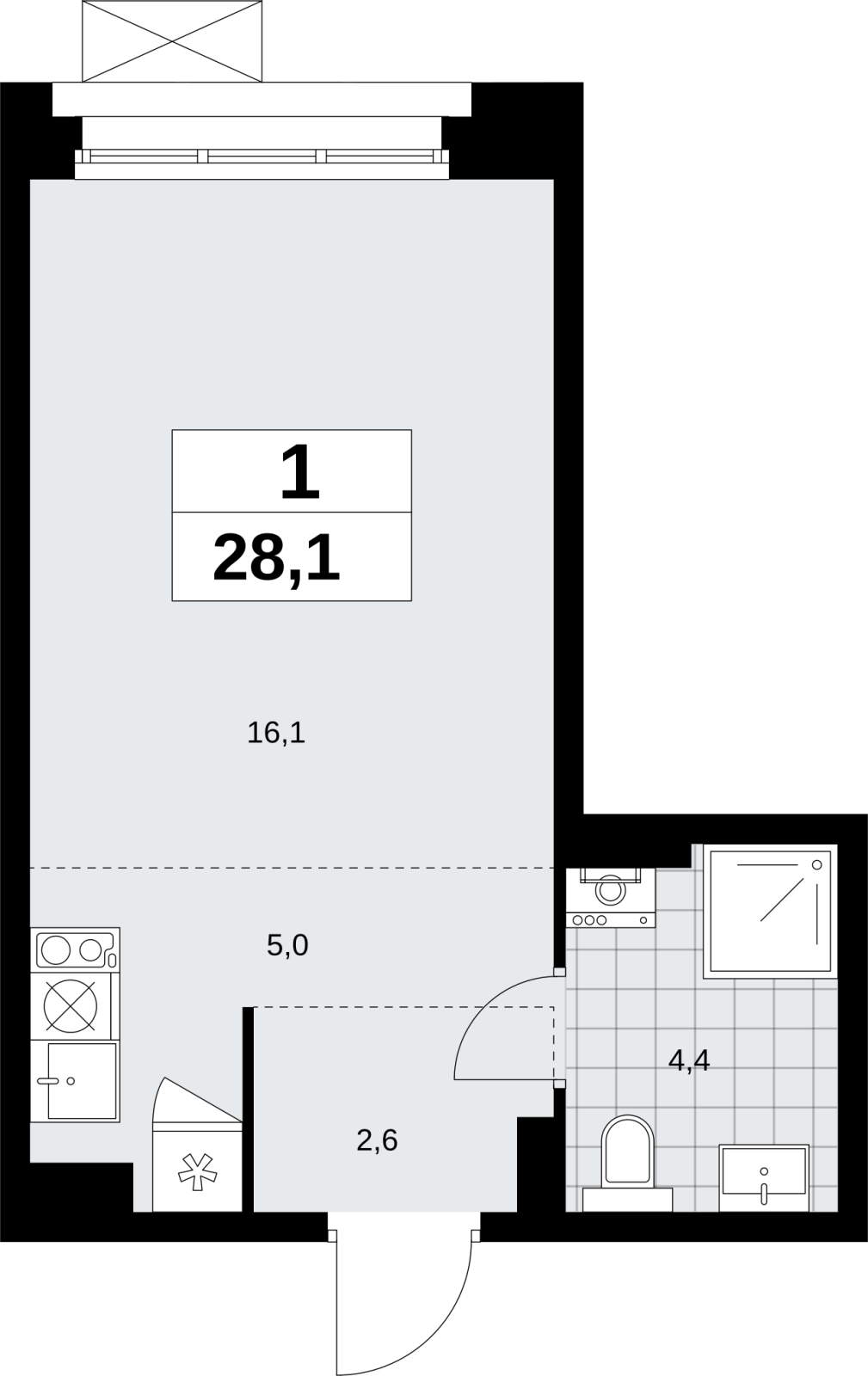 1-комн. квартира в новом жилом комплексе, метро рядом Однокомнатная квартира-студия в ЖК "Прокшино" на 3 этаже. Квартира без отделки, полностью готова к ремонту. Общая площадь: 28.1 кв.м., площадь гостиной 21.1 кв.м., из которых 5 кв.м. выделено под кухонную зону. Все окна выходят на одну сторону. В квартире один совмещенный санузел. Высота потолков 2.95 м. Дом монолитный, черырехподъездный, переменной этажности, от 10 до 14 этажей. Квартира находится в 1-й секции высотой 10 этажей в корпусе 9.2. На этаже 5 квартир. В подъезде 1 грузовой лифт. Начало строительства - 3 квартал 2025 года. Окончание строительства - 4 квартал 2027 года. Оформление сделки по договору долевого участия. В шаговой доступности от жилого комплекса имеются станции метро (расстояние по прямой): «Филатов луг» (1.4 км), «Прокшино» (1.7 км), также недалеко от этого корпуса расположены станции метро: «Саларьево», «Румянцево», «Теплый стан». ЖК «Прокшино» расположен в 7,6 км от МКАД в Новой Москве. В 8 минутах пешком находится станция метро "Прокшино" быстрой и комфортной красной линии метро. Высокую транспортную доступность обеспечивают и два крупных шоссе, до которых легко доехать за 5 минут по новой скоростной автотрассе Солнцево – Бутово – Варшавское шоссе. Жилой комплекс "Прокшино" входит в кластер Прокшино. В районе появятся дома комфорт и бизнес-класса с подземным паркингом, закрытыми благоустроенными дворами без машин, местами для активного и созерцательного отдыха, магазинами, бытовыми сервисами и другими коммерческими объектами. Рядом пруд с собственной набережной и городской парк «Хованская дубрава». Для маленьких жителей построят детские сады, образовательный комплекс. (AQID02509094)