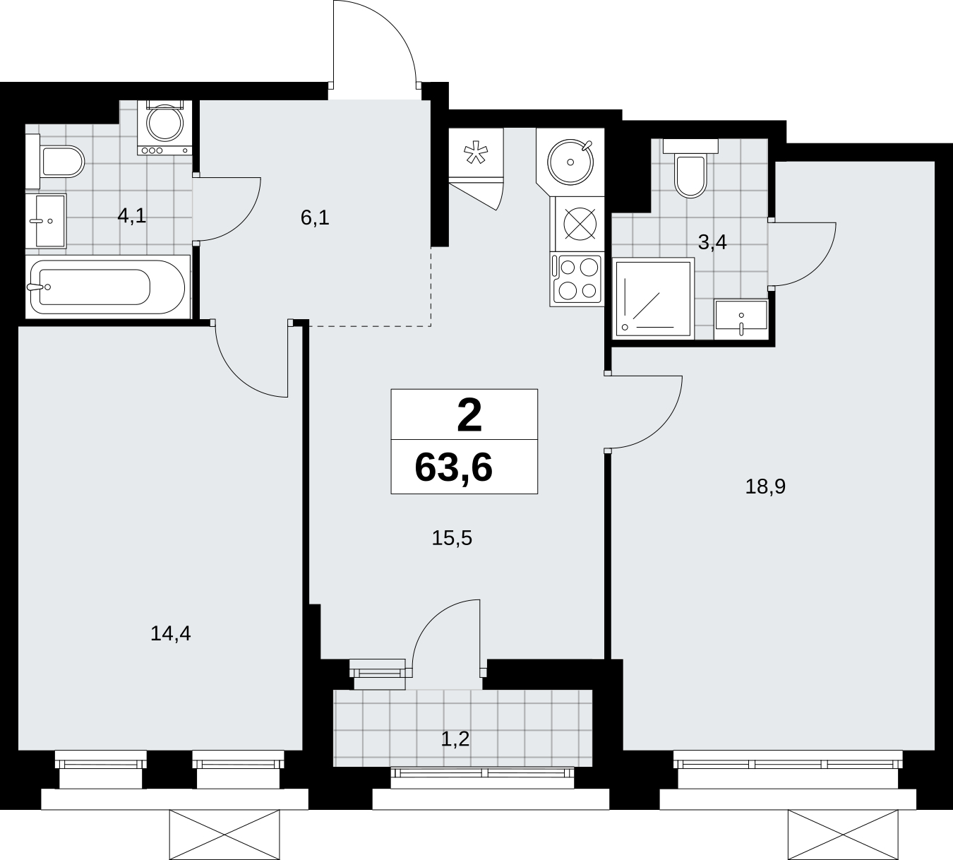 Продается двухкомнатная квартира в новостройке, у метро Двухкомнатная квартира в ЖК "Прокшино" на 7 этаже. Квартира без отделки, полностью готова к чистовой отделке и дальнейшему ремонту. Общая площадь: 63.6 кв.м., жилая: 33.3 кв.м., площадь просторной кухни-столовой: 15.5 кв.м. Комнаты изолированные, все окна выходят на одну сторону. В квартире одна лоджия, два совмещенных санузла. Высота потолков 2.95 м. Дом монолитный, черырехподъездный, переменной этажности, от 10 до 14 этажей. Квартира находится в 3-й секции высотой 14 этажей в корпусе 9.2. На этаже 4 квартиры. В подъезде 1 пассажирский и 1 грузовой лифт. Начало строительства - 3 квартал 2025 года. Окончание строительства - 4 квартал 2027 года. Оформление сделки по договору долевого участия. В шаговой доступности от жилого комплекса имеются станции метро (расстояние по прямой): «Филатов луг» (1.4 км), «Прокшино» (1.7 км), также недалеко от этого корпуса расположены станции метро: «Саларьево», «Румянцево», «Теплый стан». ЖК «Прокшино» расположен в 7,6 км от МКАД в Новой Москве. В 8 минутах пешком находится станция метро "Прокшино" быстрой и комфортной красной линии метро. Высокую транспортную доступность обеспечивают и два крупных шоссе, до которых легко доехать за 5 минут по новой скоростной автотрассе Солнцево – Бутово – Варшавское шоссе. Жилой комплекс "Прокшино" входит в кластер Прокшино. В районе появятся дома комфорт и бизнес-класса с подземным паркингом, закрытыми благоустроенными дворами без машин, местами для активного и созерцательного отдыха, магазинами, бытовыми сервисами и другими коммерческими объектами. Рядом пруд с собственной набережной и городской парк «Хованская дубрава». Для маленьких жителей построят детские сады, образовательный комплекс. (AQID02509196)