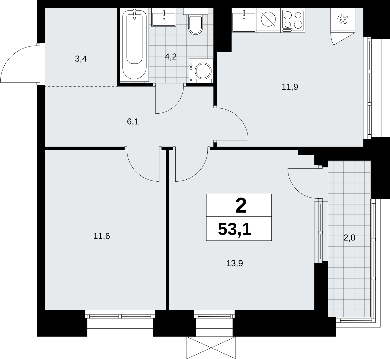 Площадь:53 м2