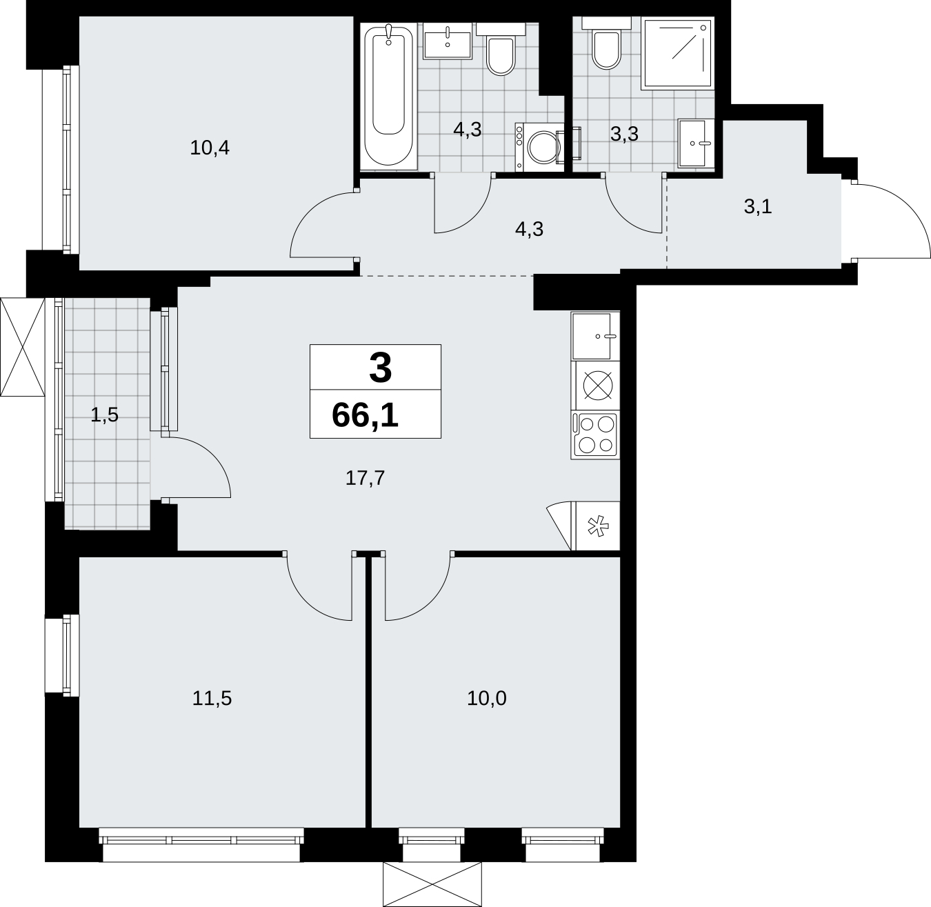 3-комнатная квартира с отделкой в новом жилом комплексе, у метро Продается 3-комн. квартира с отделкой в ЖК "Прокшино" на 16 этаже. Общая площадь: 66.1 кв.м., жилая: 31.9 кв.м., площадь просторной кухни-столовой: 17.7 кв.м. Квартира угловая, очень светлая, естественная вентиляция при открытии окон. В квартире одна лоджия, два совмещенных санузла. Высота потолков 2.95 м. Квартира находится в корпусе 9.3. Дом монолитный, одноподъездный, высотой 19 этажей. На этаже 9 квартир. В подъезде 1 пассажирский и 1 грузовой лифт. Начало строительства - 3 квартал 2025 года. Окончание строительства - 4 квартал 2027 года. Оформление сделки по договору долевого участия. В шаговой доступности от жилого комплекса расположены станции метро (расстояние по прямой): «Филатов луг» (1.4 км), «Прокшино» (1.7 км), также недалеко от этого корпуса расположены станции метро: «Саларьево», «Румянцево», «Теплый стан». ЖК «Прокшино» расположен в 7,6 км от МКАД в Новой Москве. В 8 минутах пешком находится станция метро "Прокшино" быстрой и комфортной красной линии метро. Высокую транспортную доступность обеспечивают и два крупных шоссе, до которых легко доехать за 5 минут по новой скоростной автотрассе Солнцево – Бутово – Варшавское шоссе. Жилой комплекс "Прокшино" входит в кластер Прокшино. В районе появятся дома комфорт и бизнес-класса с подземным паркингом, закрытыми благоустроенными дворами без машин, местами для активного и созерцательного отдыха, магазинами, бытовыми сервисами и другими коммерческими объектами. Рядом пруд с собственной набережной и городской парк «Хованская дубрава». Для маленьких жителей построят детские сады, образовательный комплекс. (AQID02509388)