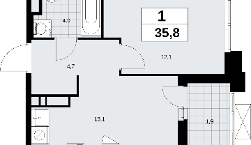 1-комн. квартира в новом жилом комплексе, у метро Продается 1-комн. квартира от застройщика в ЖК "Прокшино" на 12 этаже. Квартира без отделки, после выдачи ключей можно делать ремонт. Общая площадь: 35.8 кв.м., жилая: 12.1 кв.м., площадь просторной кухни-столовой: 13.1 кв.м. Все окна выходят на одну сторону. В квартире одна лоджия, один совмещенный санузел. Высота потолков 2.95 м. Квартира находится в корпусе 7.1.4. Дом монолитный, одноподъездный, высотой 17 этажей. На этаже 9 квартир. В подъезде 1 пассажирский и 1 грузовой лифт. Начало строительства - 4 квартал 2024 года. Окончание строительства - 1 квартал 2027 года. Оформление сделки по договору долевого участия. В шаговой доступности от жилого комплекса расположены станции метро (расстояние по прямой): «Филатов луг» (1.4 км), «Прокшино» (1.7 км), также недалеко от этого корпуса расположены станции метро: «Саларьево», «Румянцево», «Теплый стан». ЖК «Прокшино» расположен в 7,6 км от МКАД в Новой Москве. В 8 минутах пешком находится станция метро "Прокшино" быстрой и комфортной красной линии метро. Высокую транспортную доступность обеспечивают и два крупных шоссе, до которых легко доехать за 5 минут по новой скоростной автотрассе Солнцево – Бутово – Варшавское шоссе. Жилой комплекс "Прокшино" входит в кластер Прокшино. В районе появятся дома комфорт и бизнес-класса с подземным паркингом, закрытыми благоустроенными дворами без машин, местами для активного и созерцательного отдыха, магазинами, бытовыми сервисами и другими коммерческими объектами. Рядом пруд с собственной набережной и городской парк «Хованская дубрава». Для маленьких жителей построят детские сады, образовательный комплекс. (AQID02423291)