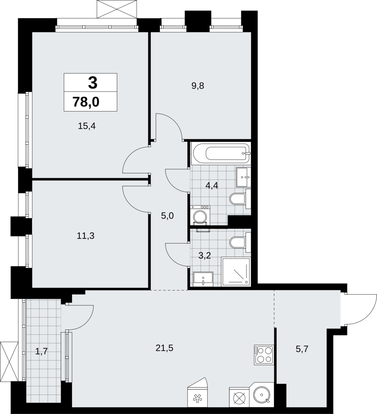 Площадь:78 м2