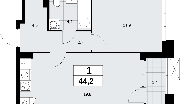 Просторная 1-комн. квартира с отделкой в новостройке, у метро Продается 1-комн. квартира от застройщика с отделкой в ЖК "Прокшино" на 10 этаже. Общая площадь: 44.2 кв.м., жилая: 11.9 кв.м., площадь просторной кухни-столовой: 19.8 кв.м. Все окна выходят на одну сторону. В квартире одна лоджия, один совмещенный санузел. Высота потолков 2.95 м. Квартира находится в корпусе 9.3. Дом монолитный, одноподъездный, высотой 19 этажей. На этаже 9 квартир. В подъезде 1 пассажирский и 1 грузовой лифт. Начало строительства - 3 квартал 2025 года. Окончание строительства - 4 квартал 2027 года. Оформление сделки по договору долевого участия. В шаговой доступности от жилого комплекса имеются станции метро (расстояние по прямой): «Филатов луг» (1.4 км), «Прокшино» (1.7 км), также недалеко от этого корпуса расположены станции метро: «Саларьево», «Румянцево», «Теплый стан». ЖК «Прокшино» расположен в 7,6 км от МКАД в Новой Москве. В 8 минутах пешком находится станция метро "Прокшино" быстрой и комфортной красной линии метро. Высокую транспортную доступность обеспечивают и два крупных шоссе, до которых легко доехать за 5 минут по новой скоростной автотрассе Солнцево – Бутово – Варшавское шоссе. Жилой комплекс "Прокшино" входит в кластер Прокшино. В районе появятся дома комфорт и бизнес-класса с подземным паркингом, закрытыми благоустроенными дворами без машин, местами для активного и созерцательного отдыха, магазинами, бытовыми сервисами и другими коммерческими объектами. Рядом пруд с собственной набережной и городской парк «Хованская дубрава». Для маленьких жителей построят детские сады, образовательный комплекс. (AQID02509339)