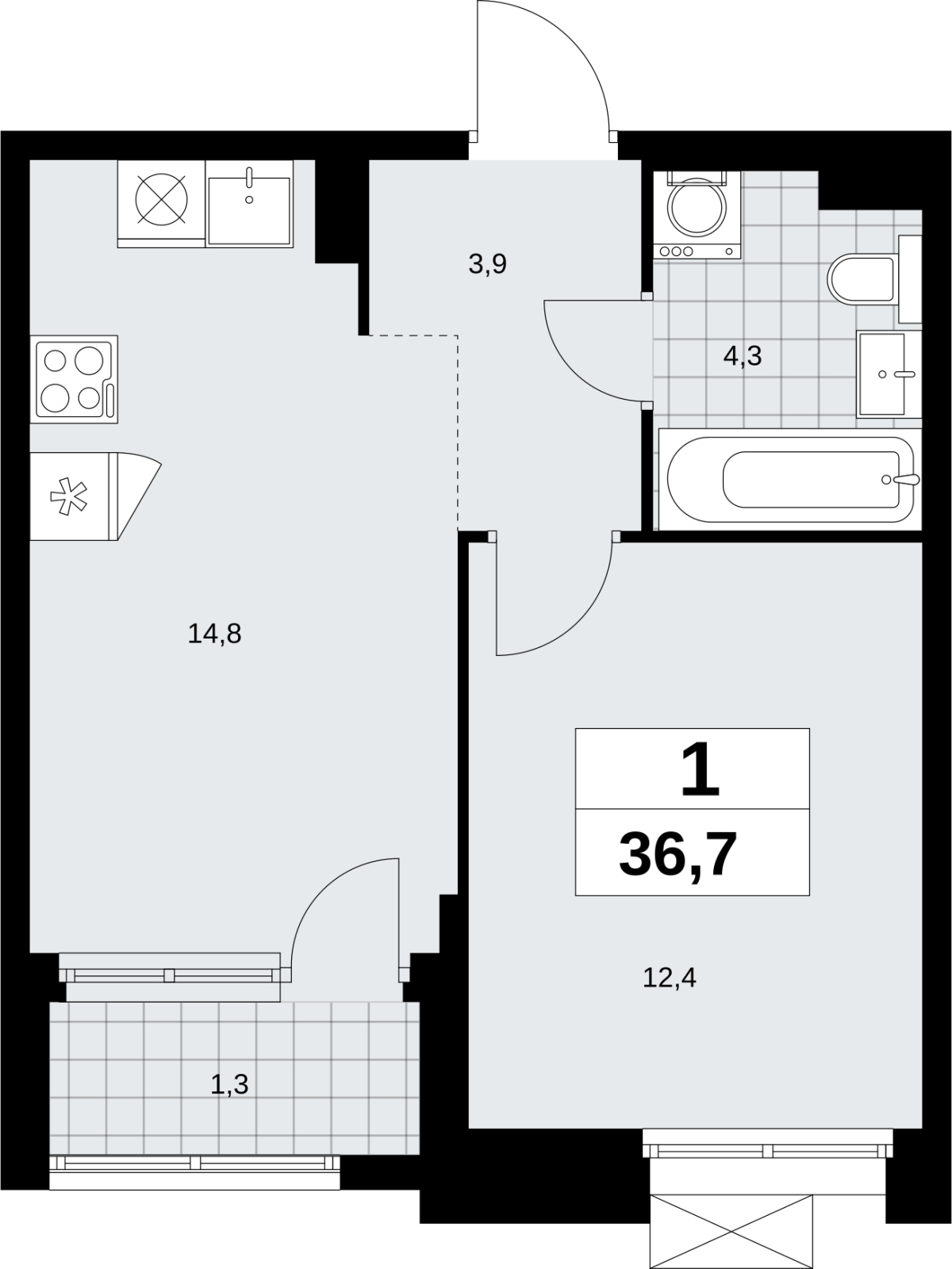 Продается однокомнатная квартира с отделкой в новостройке, метро рядом 1-комн. квартира от застройщика с отделкой в ЖК "Прокшино" на 13 этаже. Общая площадь: 36.7 кв.м., жилая: 12.4 кв.м., площадь просторной кухни-столовой: 14.8 кв.м. Все окна выходят на одну сторону. В квартире одна лоджия, один совмещенный санузел. Высота потолков 2.95 м. Квартира находится в корпусе 9.3. Дом монолитный, одноподъездный, высотой 19 этажей. На этаже 9 квартир. В подъезде 1 пассажирский и 1 грузовой лифт. Начало строительства - 3 квартал 2025 года. Окончание строительства - 4 квартал 2027 года. Оформление сделки по договору долевого участия. В шаговой доступности от жилого комплекса находятся станции метро (расстояние по прямой): «Филатов луг» (1.4 км), «Прокшино» (1.7 км), также недалеко от этого корпуса находятся станции метро: «Саларьево», «Румянцево», «Теплый стан». ЖК «Прокшино» расположен в 7,6 км от МКАД в Новой Москве. В 8 минутах пешком находится станция метро "Прокшино" быстрой и комфортной красной линии метро. Высокую транспортную доступность обеспечивают и два крупных шоссе, до которых легко доехать за 5 минут по новой скоростной автотрассе Солнцево – Бутово – Варшавское шоссе. Жилой комплекс "Прокшино" входит в кластер Прокшино. В районе появятся дома комфорт и бизнес-класса с подземным паркингом, закрытыми благоустроенными дворами без машин, местами для активного и созерцательного отдыха, магазинами, бытовыми сервисами и другими коммерческими объектами. Рядом пруд с собственной набережной и городской парк «Хованская дубрава». Для маленьких жителей построят детские сады, образовательный комплекс. (AQID02509360)