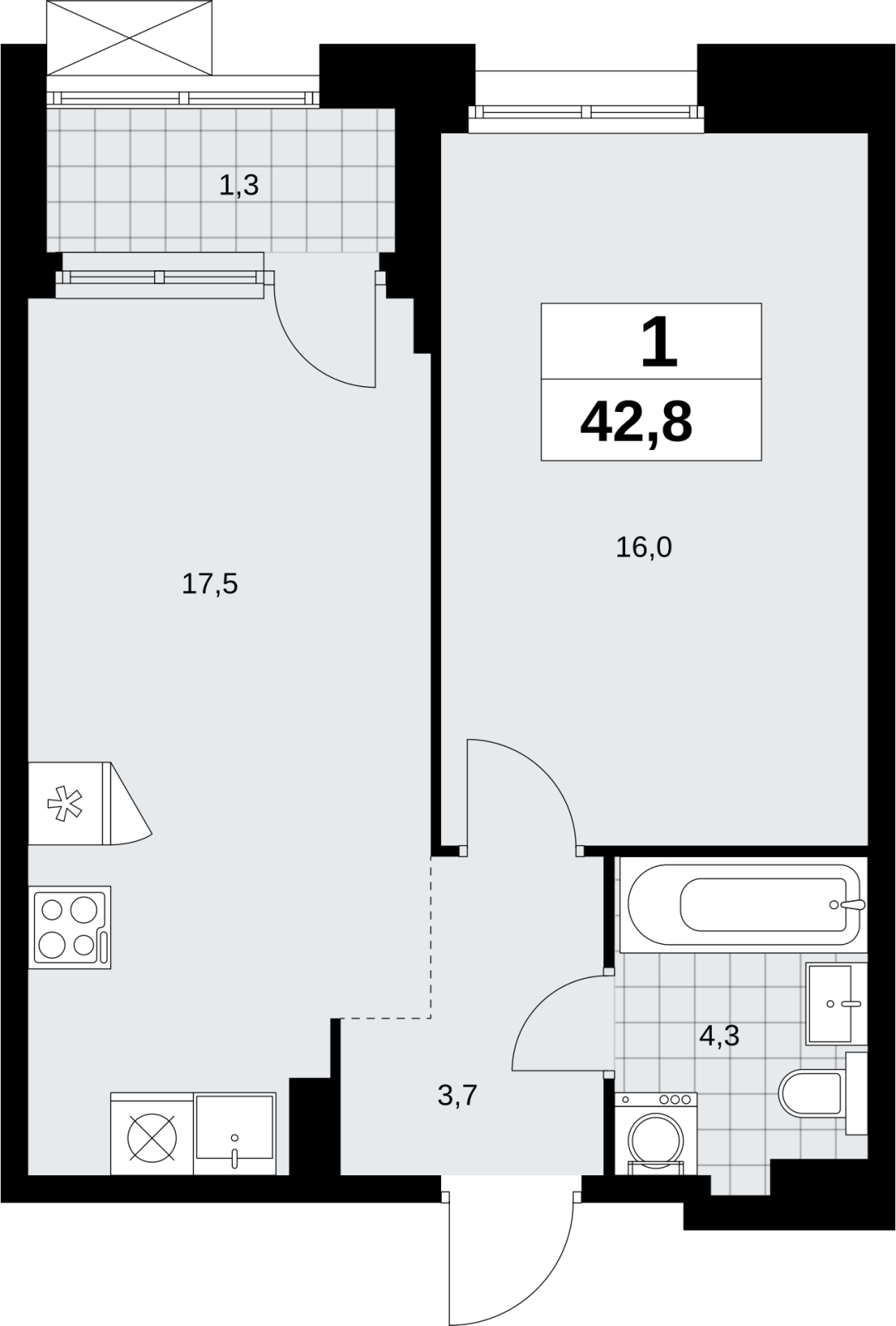 Продается 1-комнатная квартира с отделкой в новостройке, рядом с метро Просторная однокомнатная квартира с отделкой в ЖК "Прокшино" на 13 этаже. Общая площадь: 42.8 кв.м., жилая: 16 кв.м., площадь просторной кухни-столовой: 17.5 кв.м. Все окна выходят на одну сторону. В квартире одна лоджия, один совмещенный санузел. Высота потолков 2.95 м. Квартира находится в корпусе 9.3. Дом монолитный, одноподъездный, высотой 19 этажей. На этаже 9 квартир. В подъезде 1 пассажирский и 1 грузовой лифт. Начало строительства - 3 квартал 2025 года. Окончание строительства - 4 квартал 2027 года. Оформление сделки по договору долевого участия. В шаговой доступности от жилого комплекса находятся станции метро (расстояние по прямой): «Филатов луг» (1.4 км), «Прокшино» (1.7 км), также недалеко от этого корпуса расположены станции метро: «Саларьево», «Румянцево», «Теплый стан». ЖК «Прокшино» расположен в 7,6 км от МКАД в Новой Москве. В 8 минутах пешком находится станция метро "Прокшино" быстрой и комфортной красной линии метро. Высокую транспортную доступность обеспечивают и два крупных шоссе, до которых легко доехать за 5 минут по новой скоростной автотрассе Солнцево – Бутово – Варшавское шоссе. Жилой комплекс "Прокшино" входит в кластер Прокшино. В районе появятся дома комфорт и бизнес-класса с подземным паркингом, закрытыми благоустроенными дворами без машин, местами для активного и созерцательного отдыха, магазинами, бытовыми сервисами и другими коммерческими объектами. Рядом пруд с собственной набережной и городской парк «Хованская дубрава». Для маленьких жителей построят детские сады, образовательный комплекс. (AQID02509363)