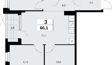3-комн. квартира с отделкой в новом ЖК, метро рядом 3-комн. квартира с отделкой в ЖК "Прокшино" на 15 этаже. Общая площадь: 66.1 кв.м., жилая: 31.9 кв.м., площадь просторной кухни-столовой: 17.7 кв.м. Угловая квартира, очень светлая, естественная вентиляция при открытии окон. В квартире одна лоджия, два совмещенных санузла. Высота потолков 2.95 м. Квартира находится в корпусе 9.3. Дом монолитный, одноподъездный, высотой 19 этажей. На этаже 9 квартир. В подъезде 1 пассажирский и 1 грузовой лифт. Начало строительства - 3 квартал 2025 года. Окончание строительства - 4 квартал 2027 года. Оформление сделки по договору долевого участия. В шаговой доступности от жилого комплекса находятся станции метро (расстояние по прямой): «Филатов луг» (1.4 км), «Прокшино» (1.7 км), также недалеко от этого корпуса расположены станции метро: «Саларьево», «Румянцево», «Теплый стан». ЖК «Прокшино» расположен в 7,6 км от МКАД в Новой Москве. В 8 минутах пешком находится станция метро "Прокшино" быстрой и комфортной красной линии метро. Высокую транспортную доступность обеспечивают и два крупных шоссе, до которых легко доехать за 5 минут по новой скоростной автотрассе Солнцево – Бутово – Варшавское шоссе. Жилой комплекс "Прокшино" входит в кластер Прокшино. В районе появятся дома комфорт и бизнес-класса с подземным паркингом, закрытыми благоустроенными дворами без машин, местами для активного и созерцательного отдыха, магазинами, бытовыми сервисами и другими коммерческими объектами. Рядом пруд с собственной набережной и городской парк «Хованская дубрава». Для маленьких жителей построят детские сады, образовательный комплекс. (AQID02509379)