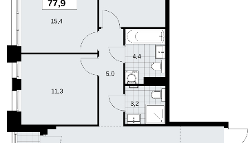 Трехкомнатная квартира с отделкой в новом ЖК, метро рядом Продается 3-комн. квартира с отделкой в ЖК "Прокшино" на 17 этаже. Общая площадь: 77.9 кв.м., жилая: 36.3 кв.м., площадь просторной кухни-столовой: 21.2 кв.м. Квартира угловая, окна oбecпeчивaют paвнoмepнoe ocвeщeниe в тeчeниe дня. В квартире одна лоджия, два совмещенных санузла. Высота потолков 2.95 м. Квартира находится в корпусе 9.3. Дом монолитный, одноподъездный, высотой 19 этажей. На этаже 9 квартир. В подъезде 1 пассажирский и 1 грузовой лифт. Начало строительства - 3 квартал 2025 года. Окончание строительства - 4 квартал 2027 года. Оформление сделки по договору долевого участия. В шаговой доступности от жилого комплекса расположены станции метро (расстояние по прямой): «Филатов луг» (1.4 км), «Прокшино» (1.7 км), также недалеко от этого корпуса находятся станции метро: «Саларьево», «Румянцево», «Теплый стан». ЖК «Прокшино» расположен в 7,6 км от МКАД в Новой Москве. В 8 минутах пешком находится станция метро "Прокшино" быстрой и комфортной красной линии метро. Высокую транспортную доступность обеспечивают и два крупных шоссе, до которых легко доехать за 5 минут по новой скоростной автотрассе Солнцево – Бутово – Варшавское шоссе. Жилой комплекс "Прокшино" входит в кластер Прокшино. В районе появятся дома комфорт и бизнес-класса с подземным паркингом, закрытыми благоустроенными дворами без машин, местами для активного и созерцательного отдыха, магазинами, бытовыми сервисами и другими коммерческими объектами. Рядом пруд с собственной набережной и городской парк «Хованская дубрава». Для маленьких жителей построят детские сады, образовательный комплекс. (AQID02509398)