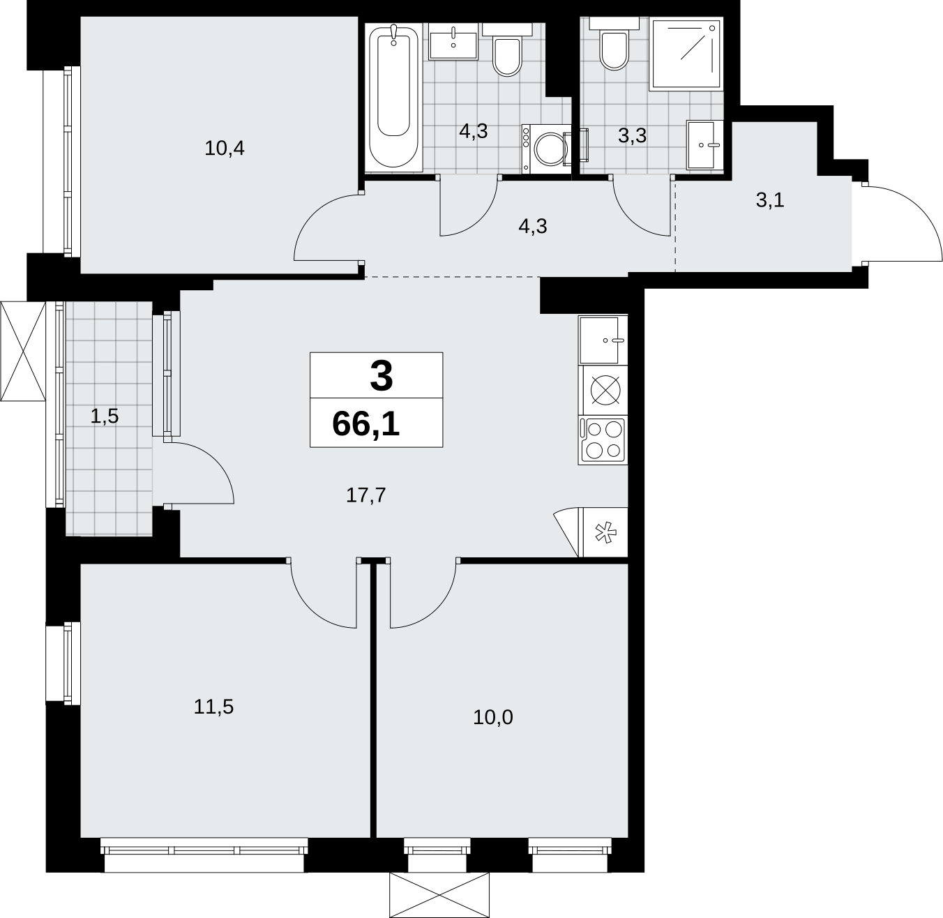 Продается просторная трехкомнатная квартира с отделкой в новом ЖК, метро рядом Просторная 3-комн. квартира с отделкой в ЖК "Прокшино" на 19 этаже. Общая площадь: 66.1 кв.м., жилая: 31.9 кв.м., площадь просторной кухни-столовой: 17.7 кв.м. Квартира угловая, окна oбecпeчивaют paвнoмepнoe ocвeщeниe в тeчeниe дня. В квартире одна лоджия, два совмещенных санузла. Высота потолков 2.95 м. Квартира находится в корпусе 9.3. Дом монолитный, одноподъездный, высотой 19 этажей. На этаже 9 квартир. В подъезде 1 пассажирский и 1 грузовой лифт. Начало строительства - 3 квартал 2025 года. Окончание строительства - 4 квартал 2027 года. Оформление сделки по договору долевого участия. В шаговой доступности от жилого комплекса расположены станции метро (расстояние по прямой): «Филатов луг» (1.4 км), «Прокшино» (1.7 км), также недалеко от этого корпуса расположены станции метро: «Саларьево», «Румянцево», «Теплый стан». ЖК «Прокшино» расположен в 7,6 км от МКАД в Новой Москве. В 8 минутах пешком находится станция метро "Прокшино" быстрой и комфортной красной линии метро. Высокую транспортную доступность обеспечивают и два крупных шоссе, до которых легко доехать за 5 минут по новой скоростной автотрассе Солнцево – Бутово – Варшавское шоссе. Жилой комплекс "Прокшино" входит в кластер Прокшино. В районе появятся дома комфорт и бизнес-класса с подземным паркингом, закрытыми благоустроенными дворами без машин, местами для активного и созерцательного отдыха, магазинами, бытовыми сервисами и другими коммерческими объектами. Рядом пруд с собственной набережной и городской парк «Хованская дубрава». Для маленьких жителей построят детские сады, образовательный комплекс. (AQID02509414)
