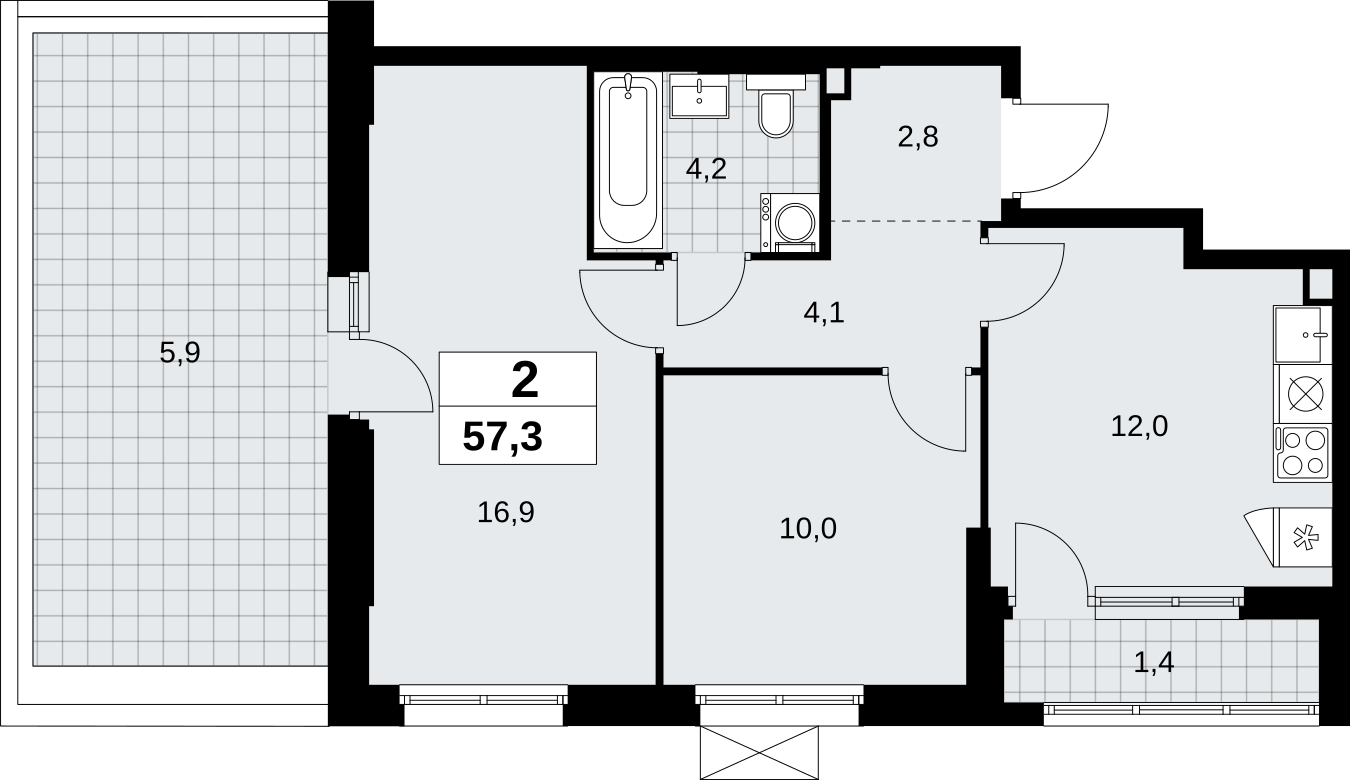 Площадь:57 м2
