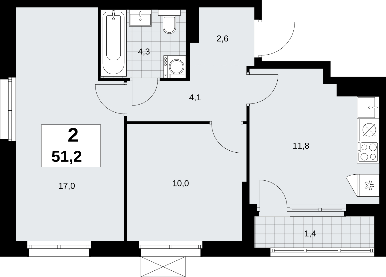Площадь:51 м2