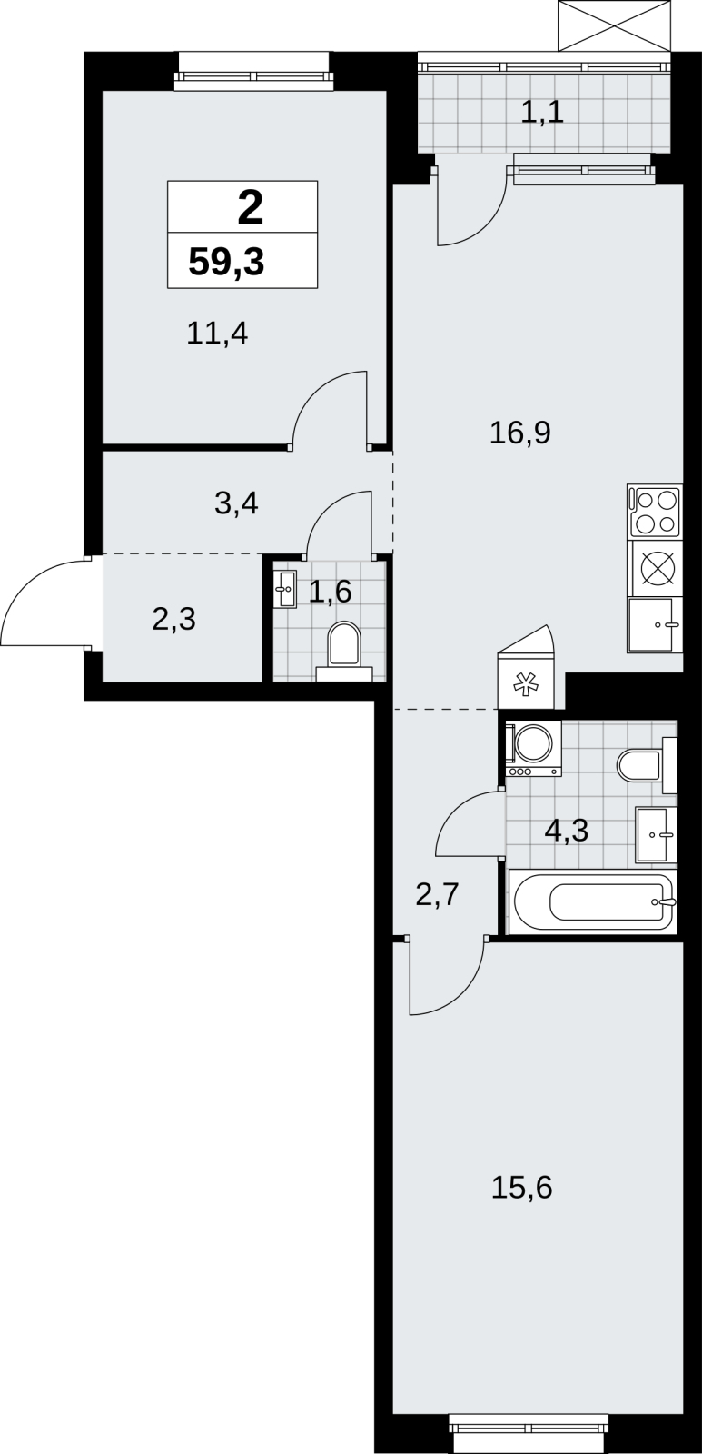 Площадь:59 м2