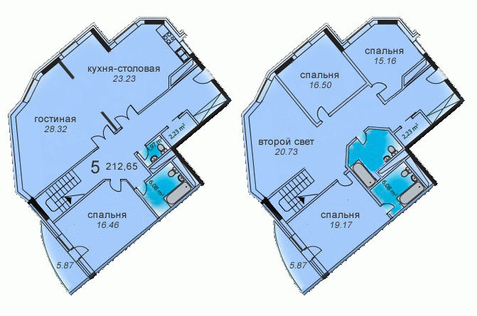 Площадь квартир:53 — 304 м2