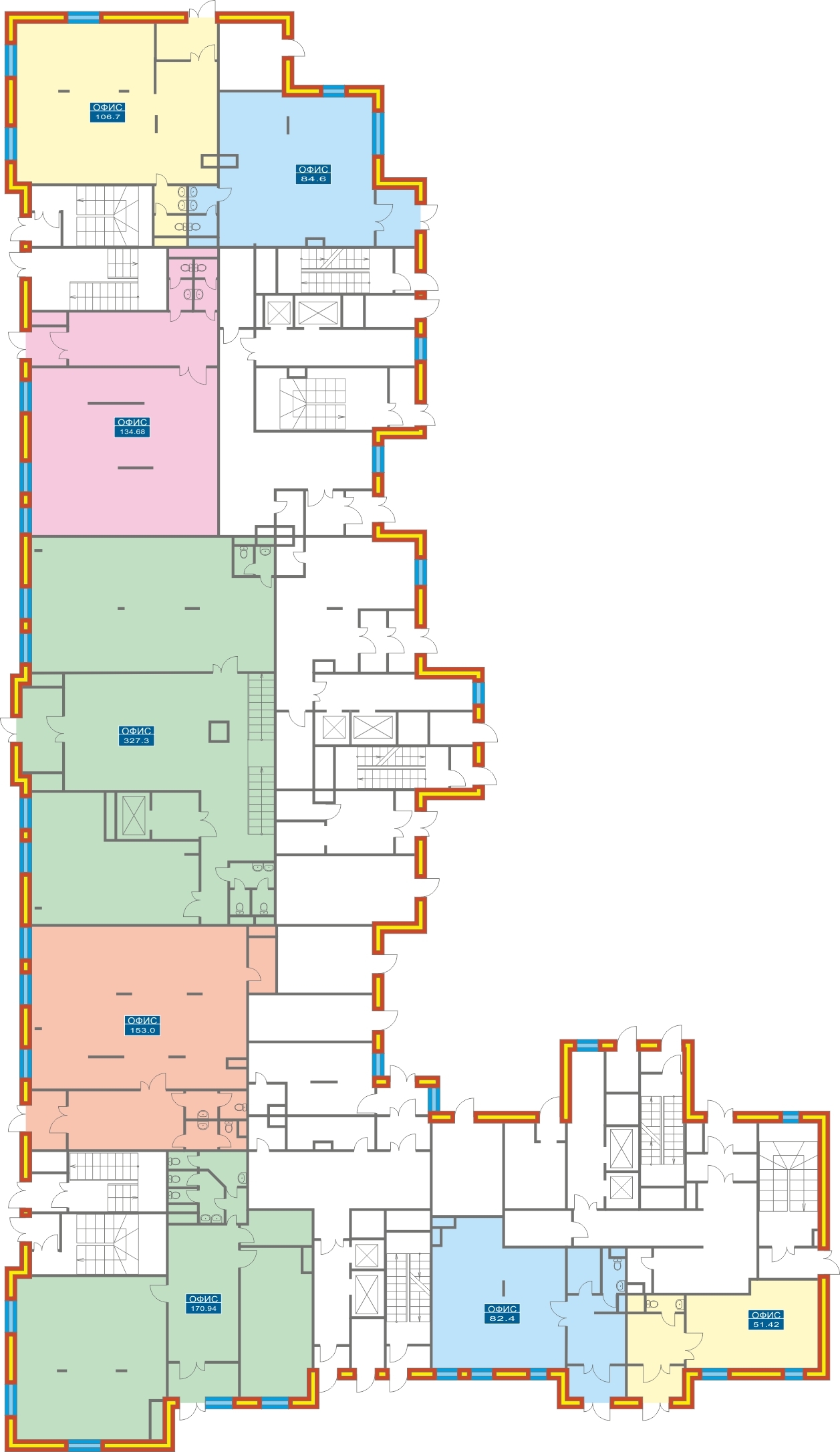 Территория комплекса закрыта от посторонних и находится под охраной. Во дворе запланировано озеленение, спортивные и детские площадки, места для отдыха. Под каждым из корпусов оборудуется подземный паркинг, в общей сложности на 444 машиноместа. Первые этажи отведены под коммерческие помещения.