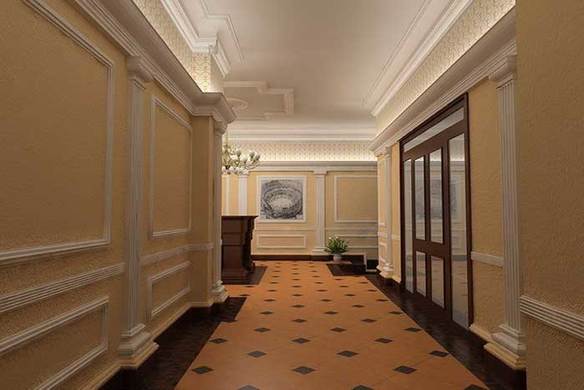 Большое внимание уделено внутренней отделке квартир - она выполнена из современных, дорогих и достаточно редких материалов. Рамы стеклопакетов изготовлены из красного дерева. Двери- основные и внутриквартирные- сделаны из дерева ценных твердых пород, некоторые украшены витражами.