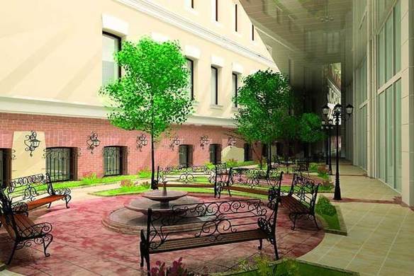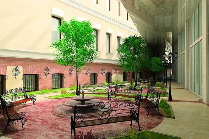 В жк имется уютный дворик – место тишины и отдыха от шума большого города. Он тоже выполнен в стиле восемнадцатого века: аккуратные газоны, гранитная плитка тротуарных дорожек, ограждения – все это создано для неспешных спокойных прогулок.