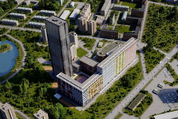 Новый квартал включает четыре монолитные «башни». Строительство ведется в несколько этапов. В рамках первой очереди возводятся два здания - высотой 14 и 20 этажей. Корпуса выполняются по оригинальному проекту и привлекают внимание ярким, современным обликом: стильные фасады (каждый уникален по декоративным и цветовым решениям), необычные конфигурации, панорамное остекление — виды из окон открываются действительно красивые. Авторство проекта принадлежит известному архитектурному бюро SPEECH.