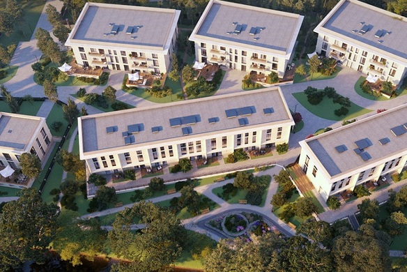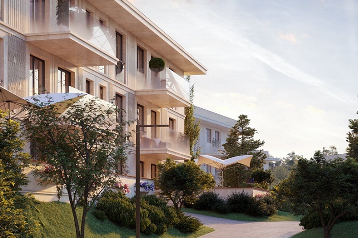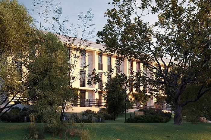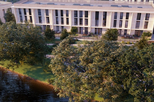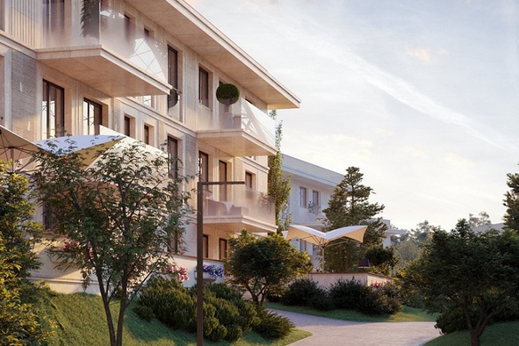 На закрытой, охраняемой территории строится три трехэтажных малоквартирных корпуса, а также индивидуальные виллы и сблокированные дома-таунхаусы. Архитектурный облик зданий разработан известным столичным бюро — уникальные решения фасадов с отделкой из природного камня, панорамное остекление. Из окон всех квартир открываются красивейшие виды реки или зеленого массива.