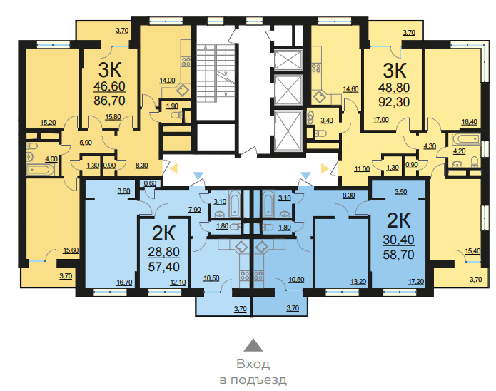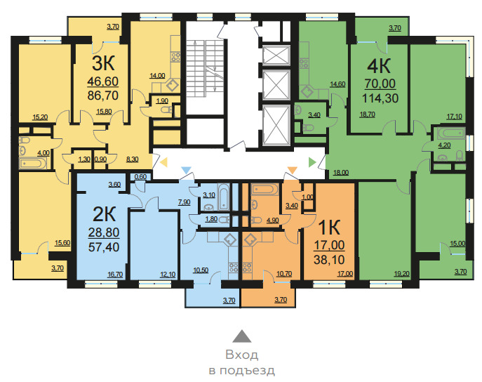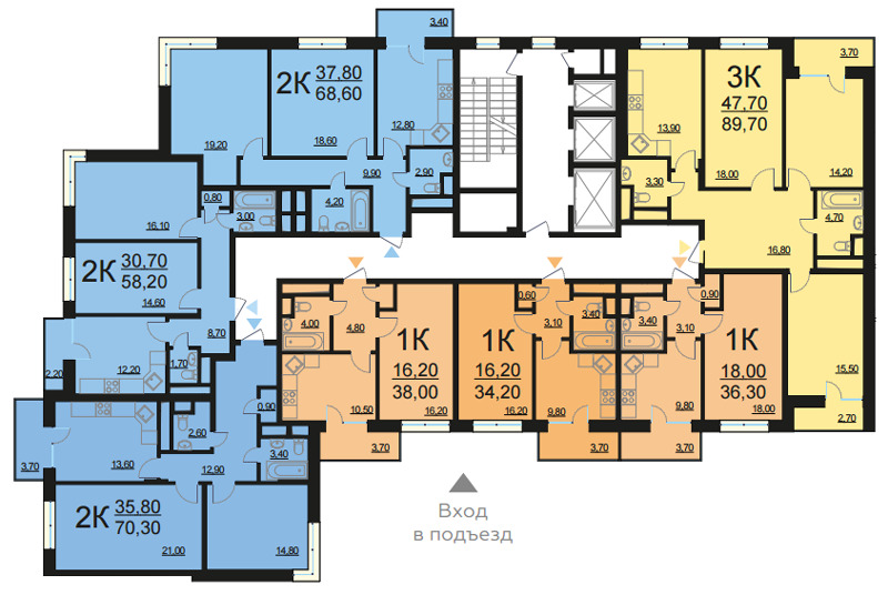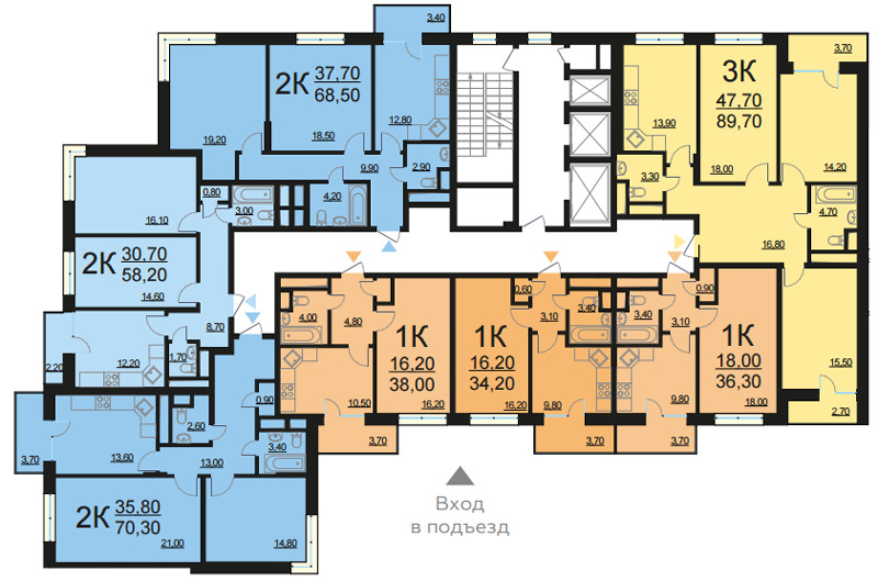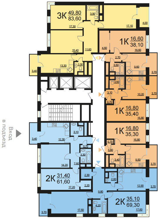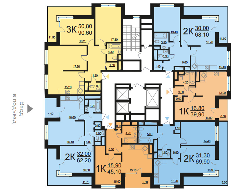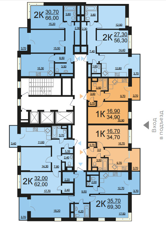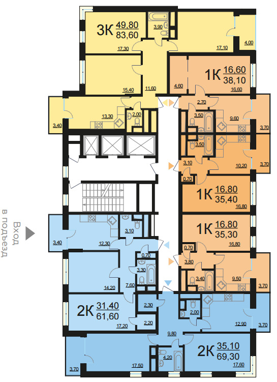 Площадь квартир:37 — 84.5 м2