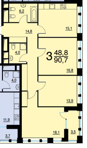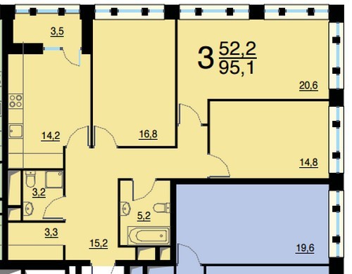 Общая площадь комплекса составляет порядка 70000 кв. метров — три высотных, до 20 этажей, монолитных дома. Квартиры сданы без внутренней отделки — одно-, двух- и трехкомнатные, различной площади и планировки.