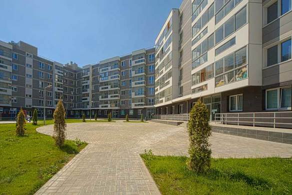 Жилой комплекс устроен по концепции "двор без машин", есть подземный паркинг. Интересные дома с панорамными окнами и французскими балконами. Понравились планировки, высокие потолки - 3,10.