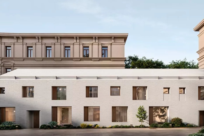 Стильные малоэтажные особняки прекрасно вписываются в окружающую историческую застройку - арочные окна в пол, колонны, русты и эркеры украшают фасад каждого здания. В отделке фасадов использован натуральный камень и кирпич. Разработкой архитектурной концепции занималась мастерская «Цимайло Ляшенко и партнеры».