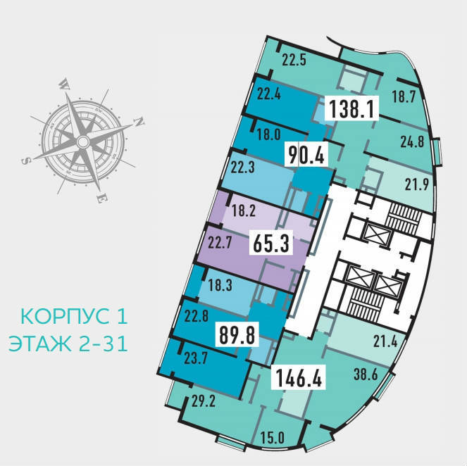 Выбор квартир, всего их в новом комплексе 827, впечатляет: здесь предлагается не только классическая городская недвижимость с одной, двумя или тремя комнатами, но и просторные многокомнатные апартаменты. Площади варьируются от 42 до 236 кв. метров, в каждом типе можно подобрать наиболее понравившуюся планировку.