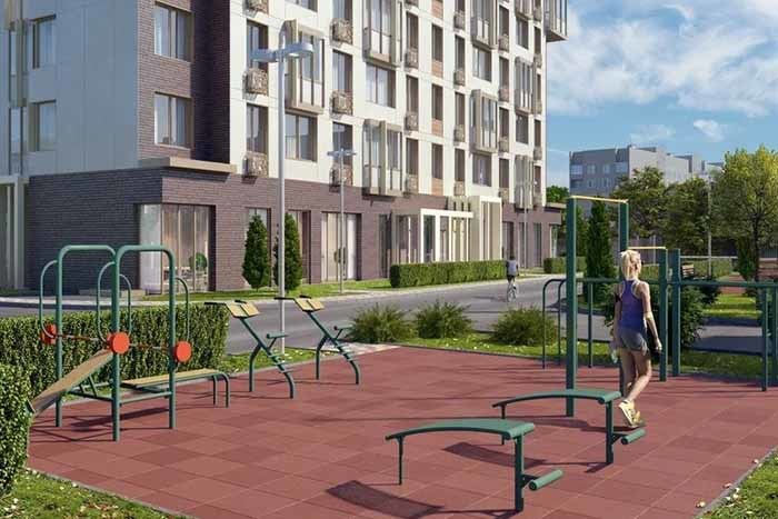 Первый этаж нежилой, он отведен под коммерческие помещения. Кроме того, известно, что там откроется детское дошкольное учреждение. В подземным уровне оборудуется паркинг. Внутренний двор озеленяется, устанавливается спортивная и детская площадки.